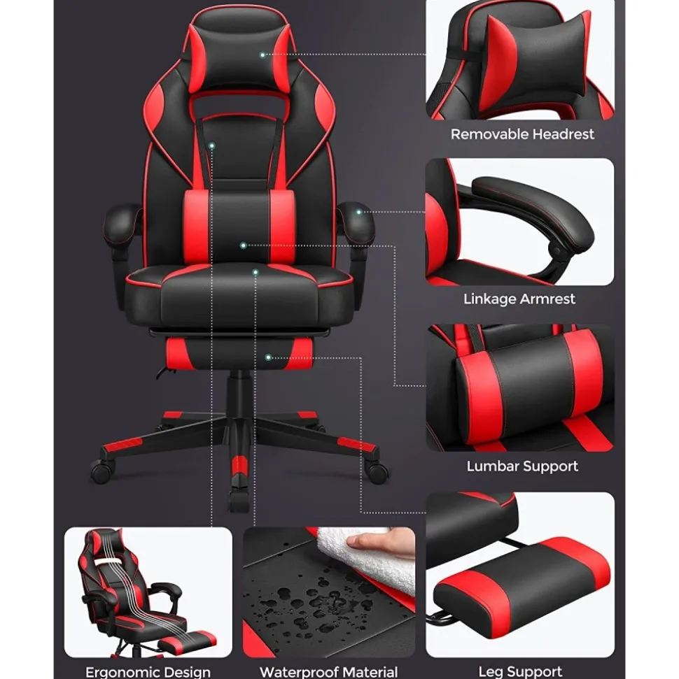 Kontorsstol med klädsel av PU-läder. Stolen har tilt-funktion, justerbar höjd och utfällbart fotstöd. Tål en belastning av 150 kg.