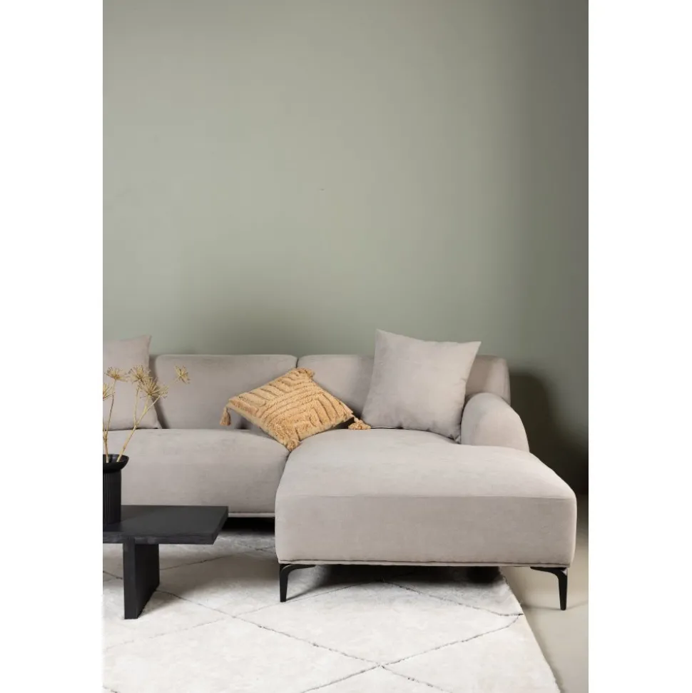 Höj stilnivån i ditt hem med en modern, grå som sannerligen imponerar med sin lyxiga design! Viskan är vår fantastiska tresitssoffa med divan. Den gråa kulören värmer upp atmosfären och det slitstarka polyestertyget är enkelt att hålla fräscht med hjälp av våra skötselråd. Soffan lyfts upp av smala ben i svart metall vilket både ger ett luftigt, minimalistiskt intryck och underlättar för dammsugaren. Två kuddar ingår som bistår soffan som bekvämt armstöd eller stöd för ländryggen. Den här soffan har helt enkelt tänkt på allt och kommer garanterat göra succé i ditt hem, antingen intill fåtöljer framför brasan eller solitär framför tv:n. Bara du bestämmer vad som passar bäst! Levereras omonterad.
