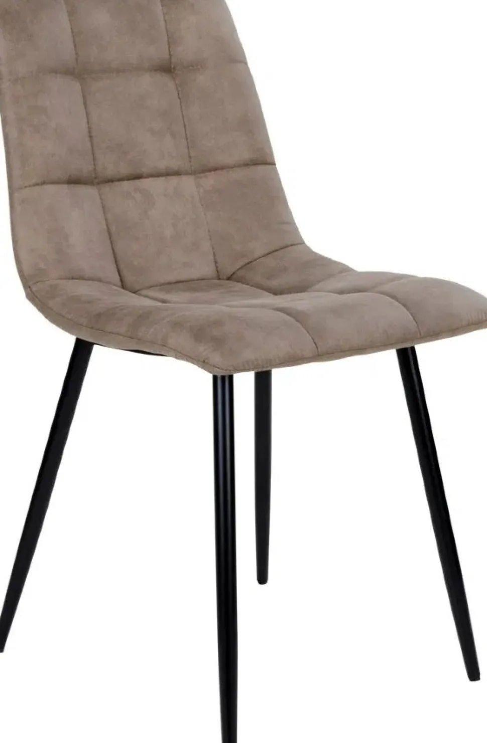 Matgrupp bestående av i vitt med träfärgade ben och 4 st i ljusbrunt microfibertyg. Levereras omonterad.