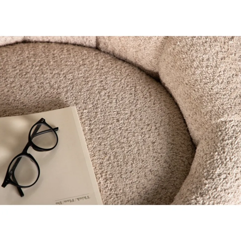 Med en genomtänkt design och slitstarkt material i det läckra boucletyget i beige kulör gör denna garanterat succé. Utformningen är robust och ger en smakfull tyngd åt rummet och sömmarna i ryggen blir till en iögonfallande detalj. Placera intill soffgruppen för att skapa extra sittplats eller solitär i favorithörnan!