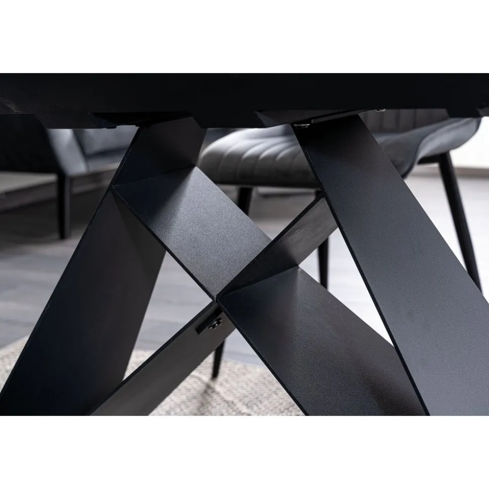 Matbord av metall. Bordsskiva av keramik och tempererat glas.