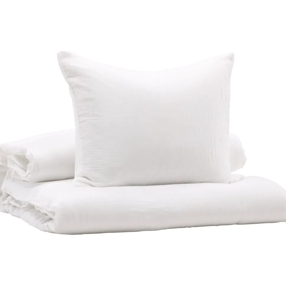 Mila bäddsätt har alla rätt – mysigt, snyggt och skönt. De här sängkläderna i bomullsväv är tvättåliga och står sig över tid. Bäddsetet är stilrent enfärgat i en smakfull vit kulör. Skapa den lyxiga hotellkänslan i ditt eget sovrum. Det här bäddsetet är lika gosigt att bädda ner sig i som skönt att sova på.