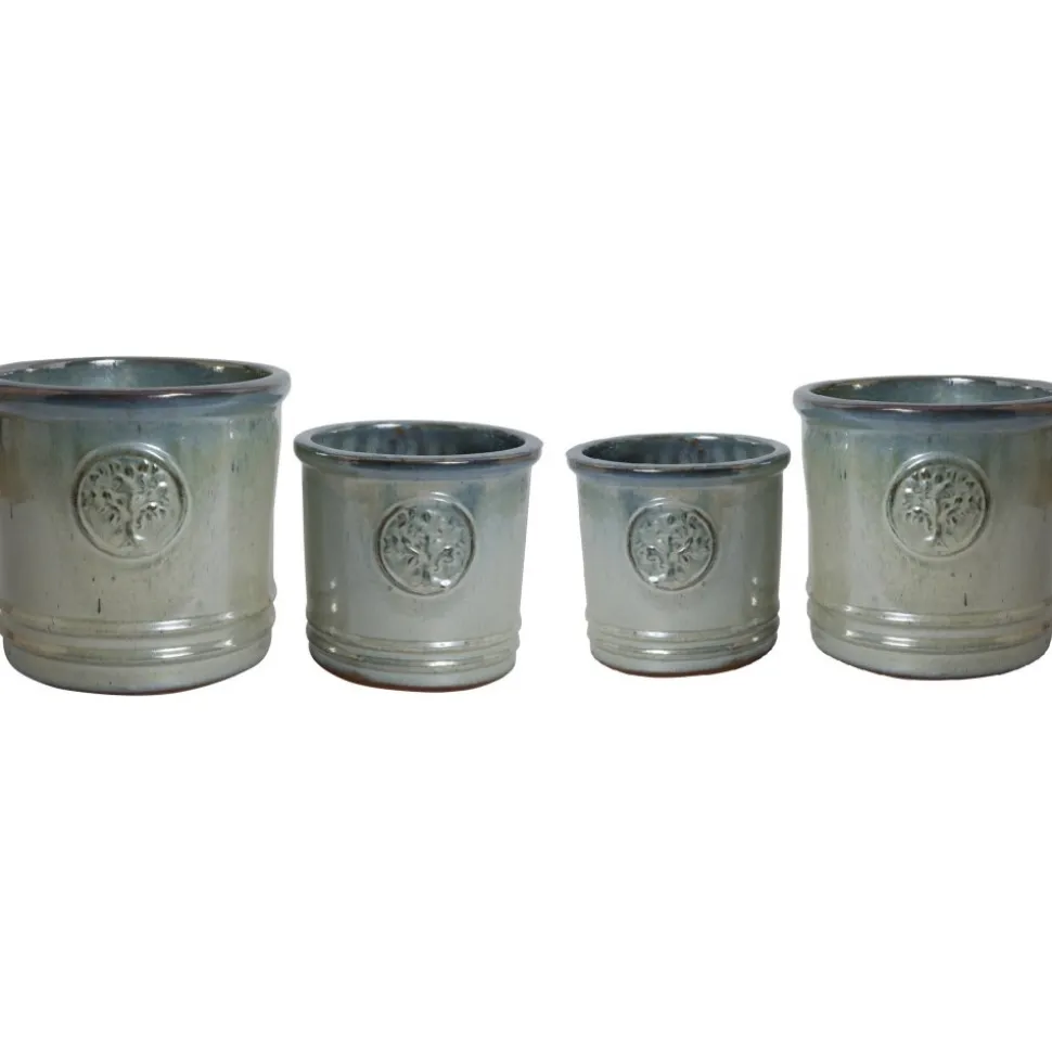 Kruka i modern design med ett träd som sigill. Set om 4 st krukor. Krukorna är gjorda för att ha ute.