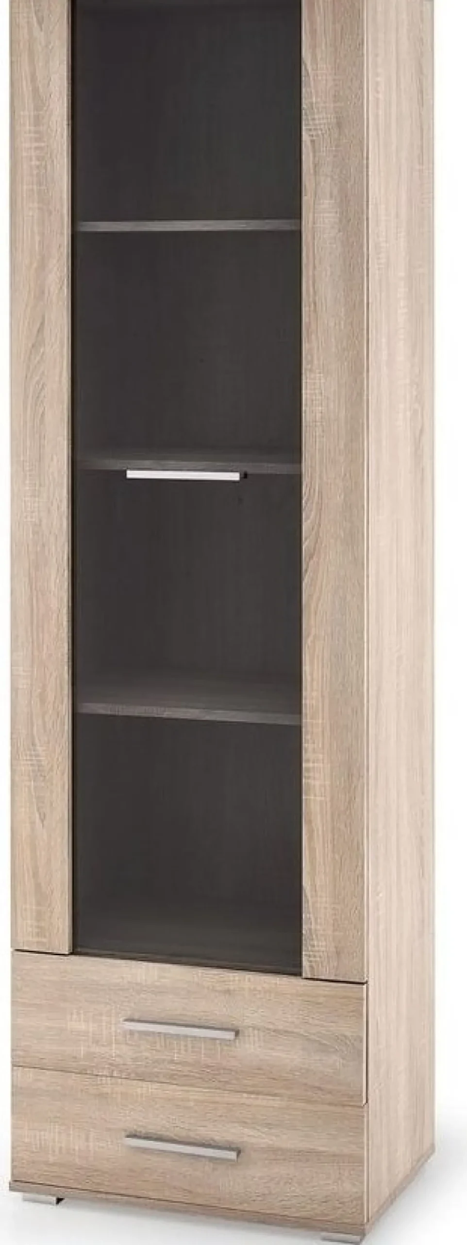 Ett härligt med en modern design. Vitrinskåpet är tillverkat av laminerad MFP (premium träskiva) med en härlig högblank finish. Skåpsdörren är av glas och skåpet är rustat med 4 hyllplan och 2 lådor för smart förvaring.