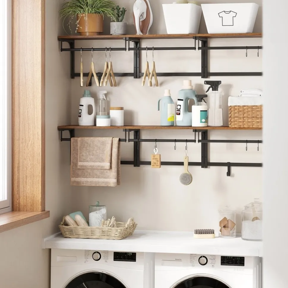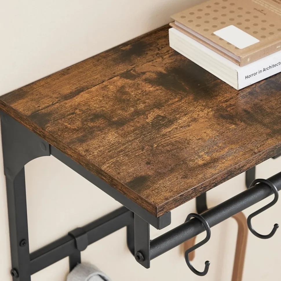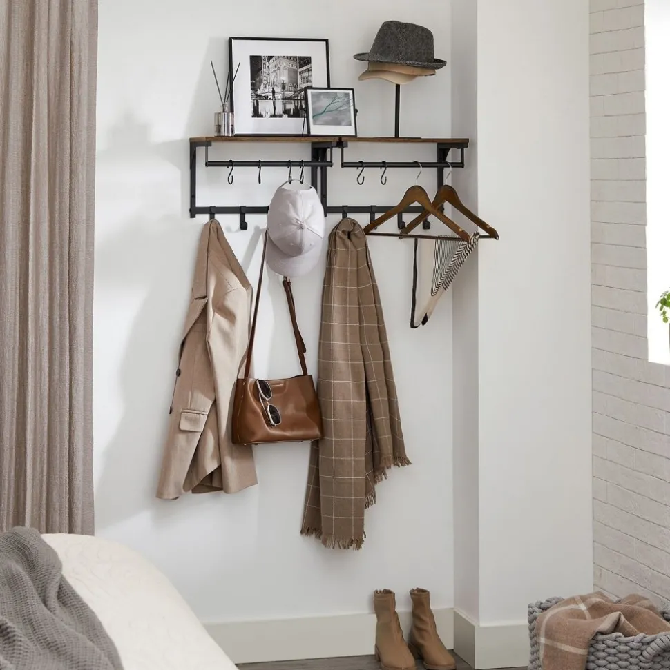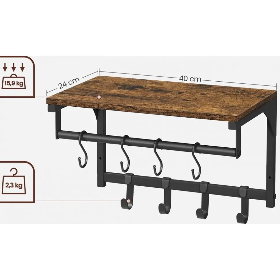 Klädhängare med . Gjord av trä och stål.