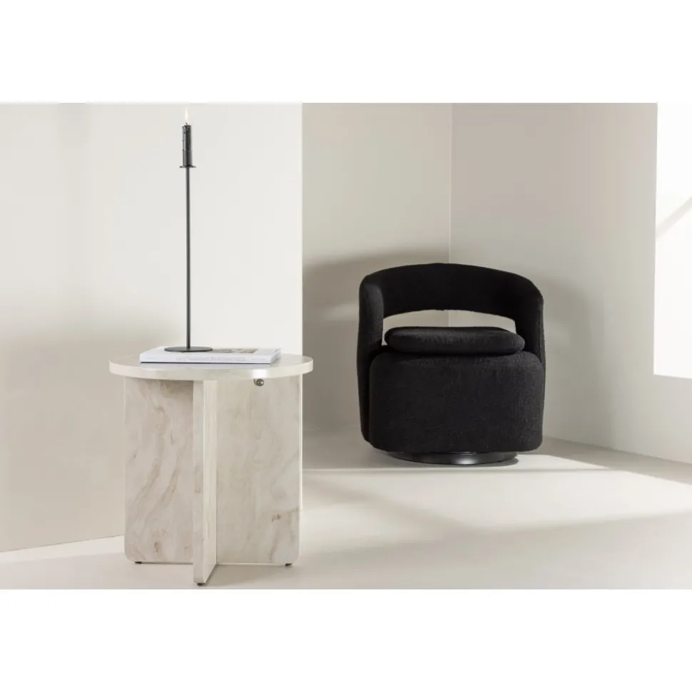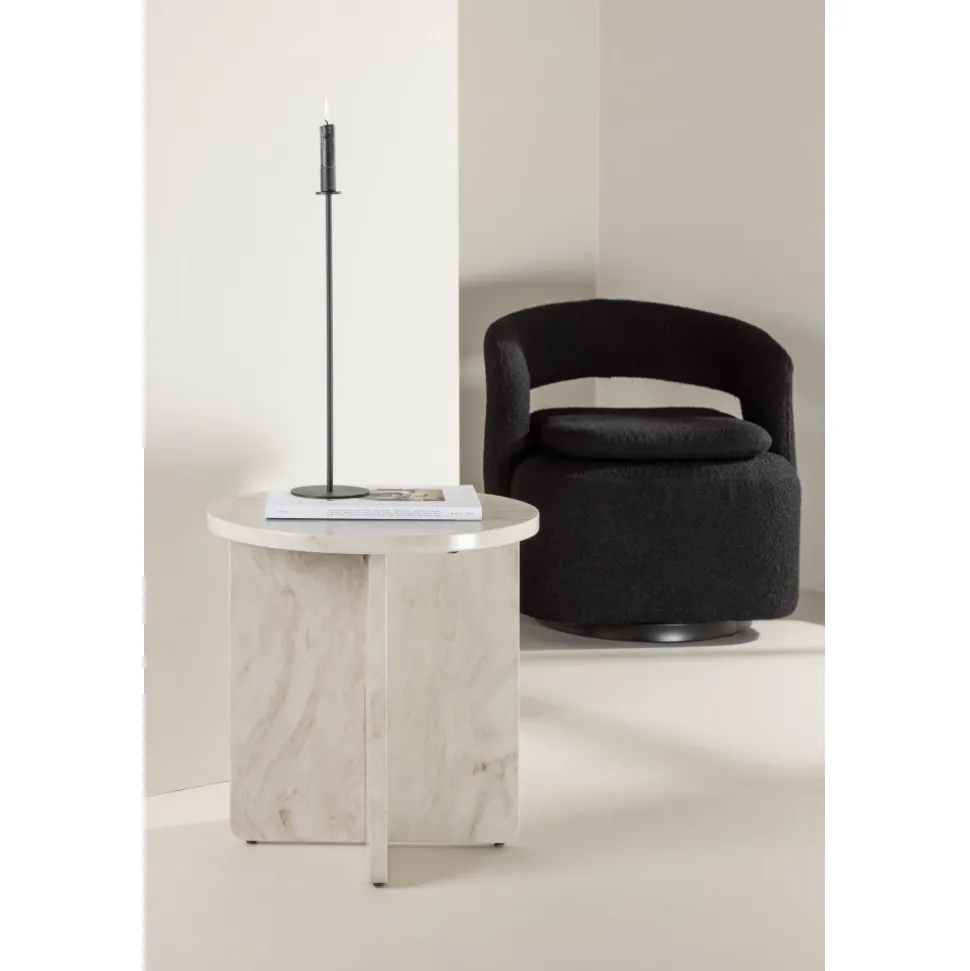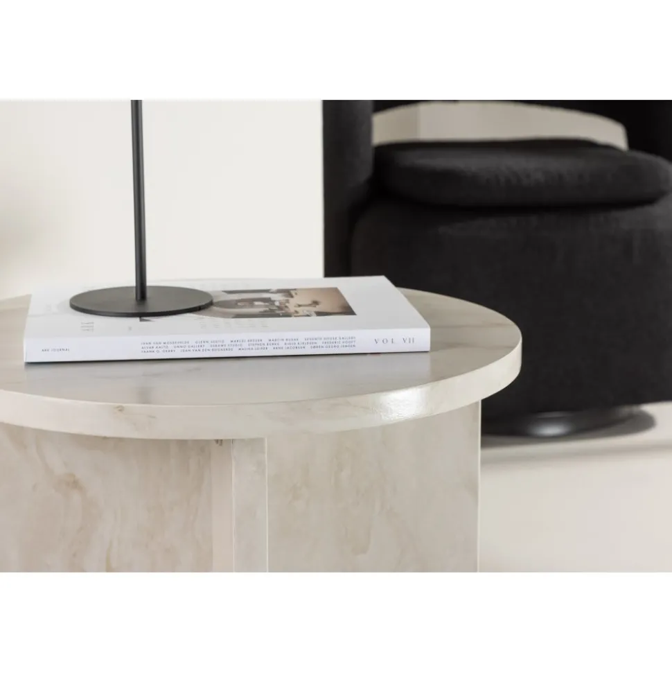 Ålesund är ett stilfullt och praktiskt tillskott till ditt hem. Med sina mått på 50 x 50 cm är det perfekt som ett sidobord bredvid soffan eller sängen. Den rundade bordsskivan har en diameter på 50 cm, vilket ger gott om plats för att visa upp en vacker vas med blommor eller andra dekorativa föremål. Bordet är utfört i en vacker beige färg som smälter in i olika inredningsstilar. Dess skandinaviska och moderna design ger rummet en fräsch och elegant känsla. Tillverkat av MDF-material med en marmorlook, kombinerar Ålesund sidobord stil och hållbarhet på ett fantastiskt sätt. Detta söta sidobord är inte bara estetiskt tilltalande utan också funktionellt. Du kan enkelt använda det som en praktisk yta för att placera dina vardagliga föremål eller som en fokuspunkt med en vacker blomsterarrangemang. Fyll ut ditt rum med en touch av skandinavisk elegans och modern stil genom att lägga till Ålesund sidobord. Det kommer definitivt att höja både utseendet och funktionaliteten i ditt hem. Levereras omonterad.