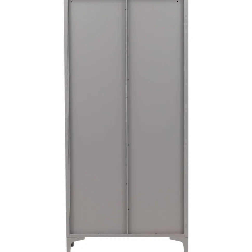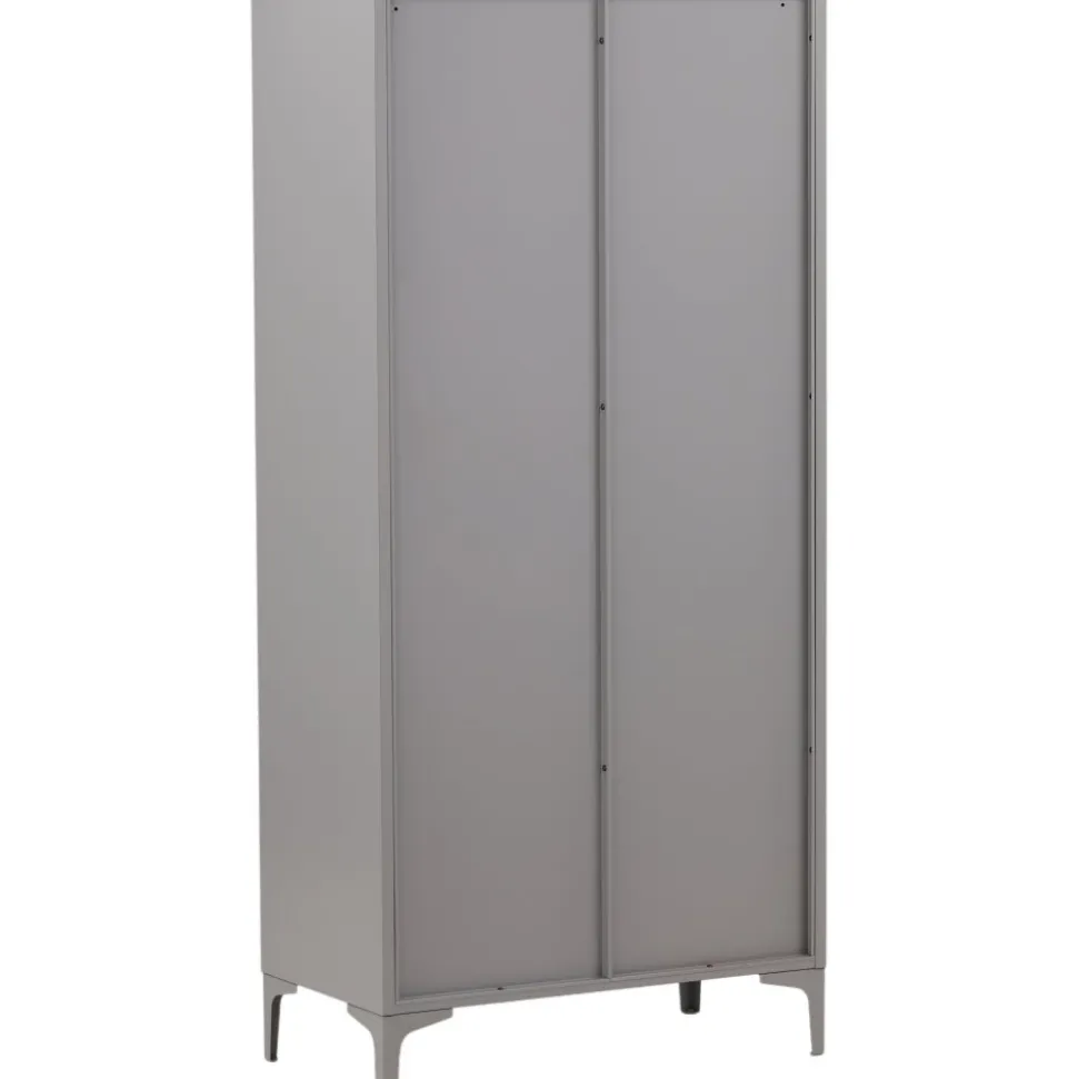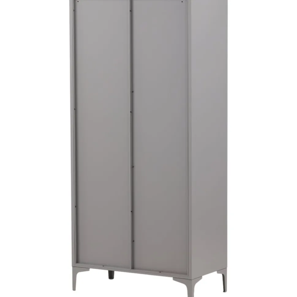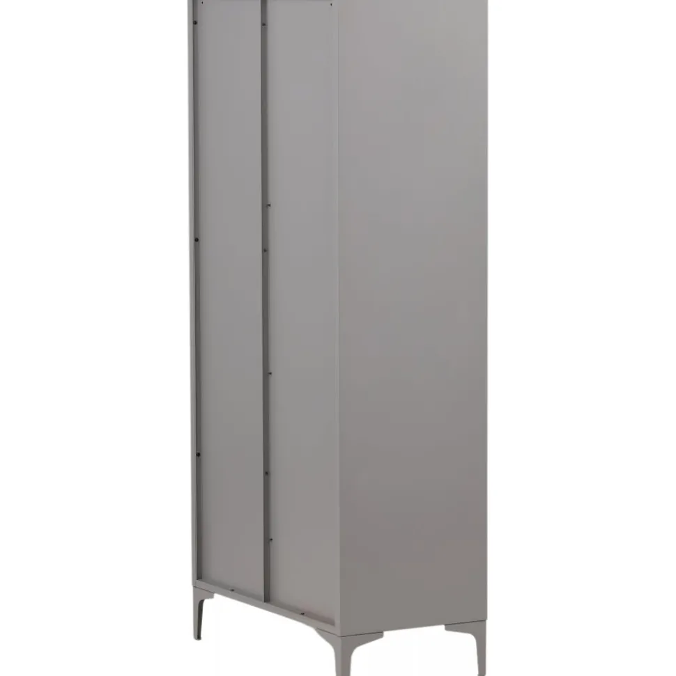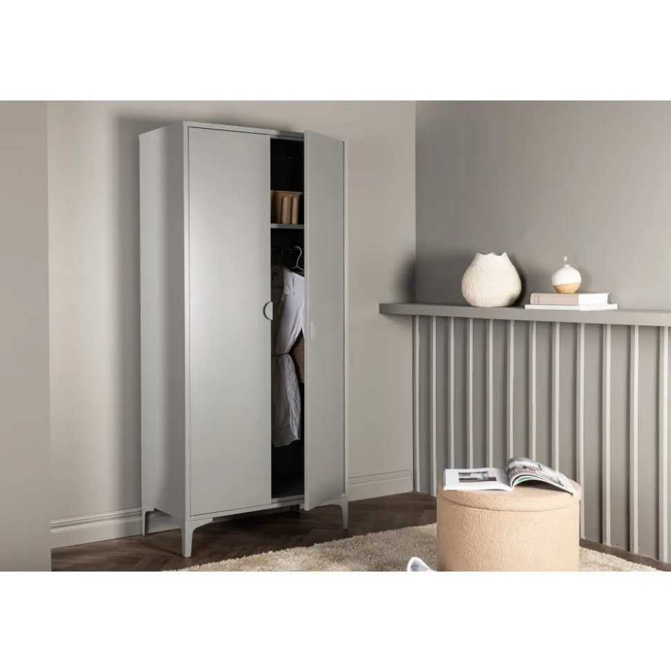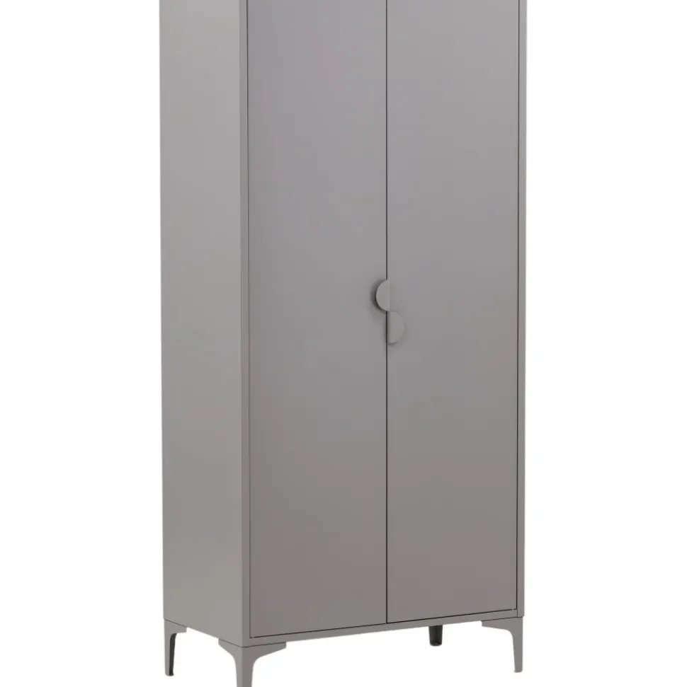 Garderoben från serien Alexander är det perfekta tillskottet till sovrummet. Den här höga garderoben i grått stål har två dörrar som öppnar upp till fyra hyllplan och rymmer även plats för hängare så att de nystrukna kläderna slipper skrynklas. Alexander lyfts upp av fyra nätta ben som skapar ett luftigt intryck och underlättar också för dammsugaren. Investera i mer förvaringsyta till dig själv och få en snygg möbel i ditt hem på köpet.