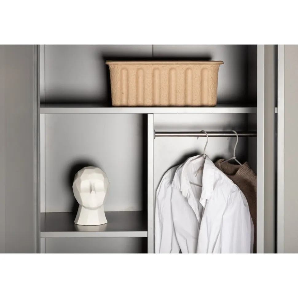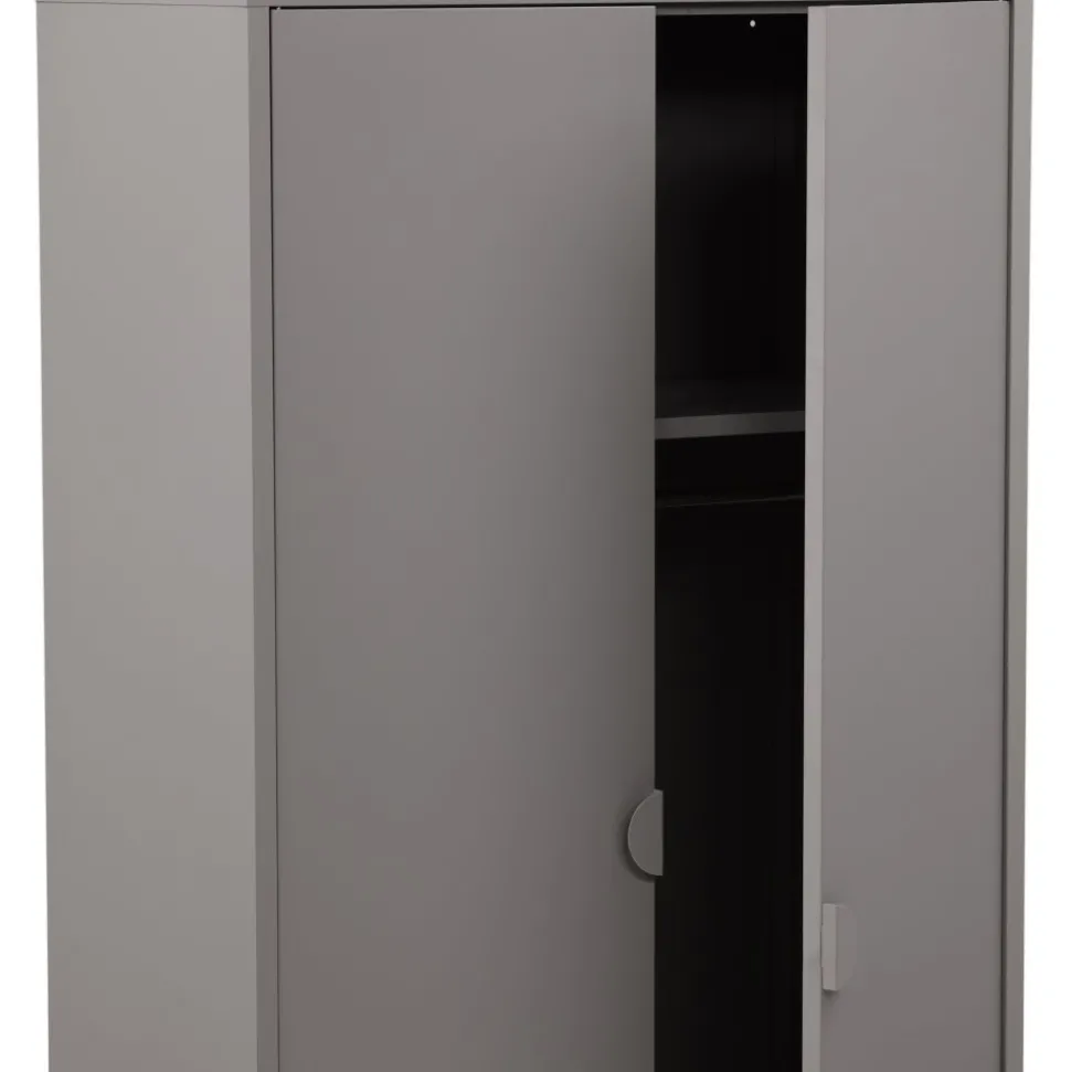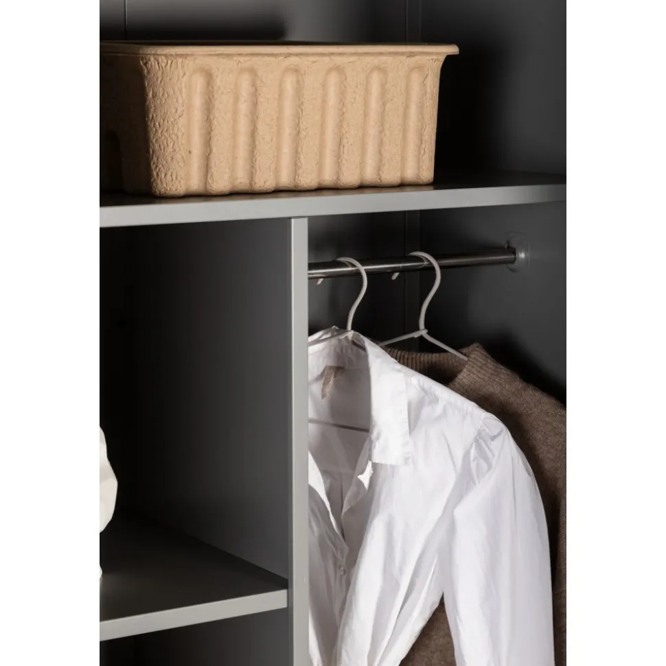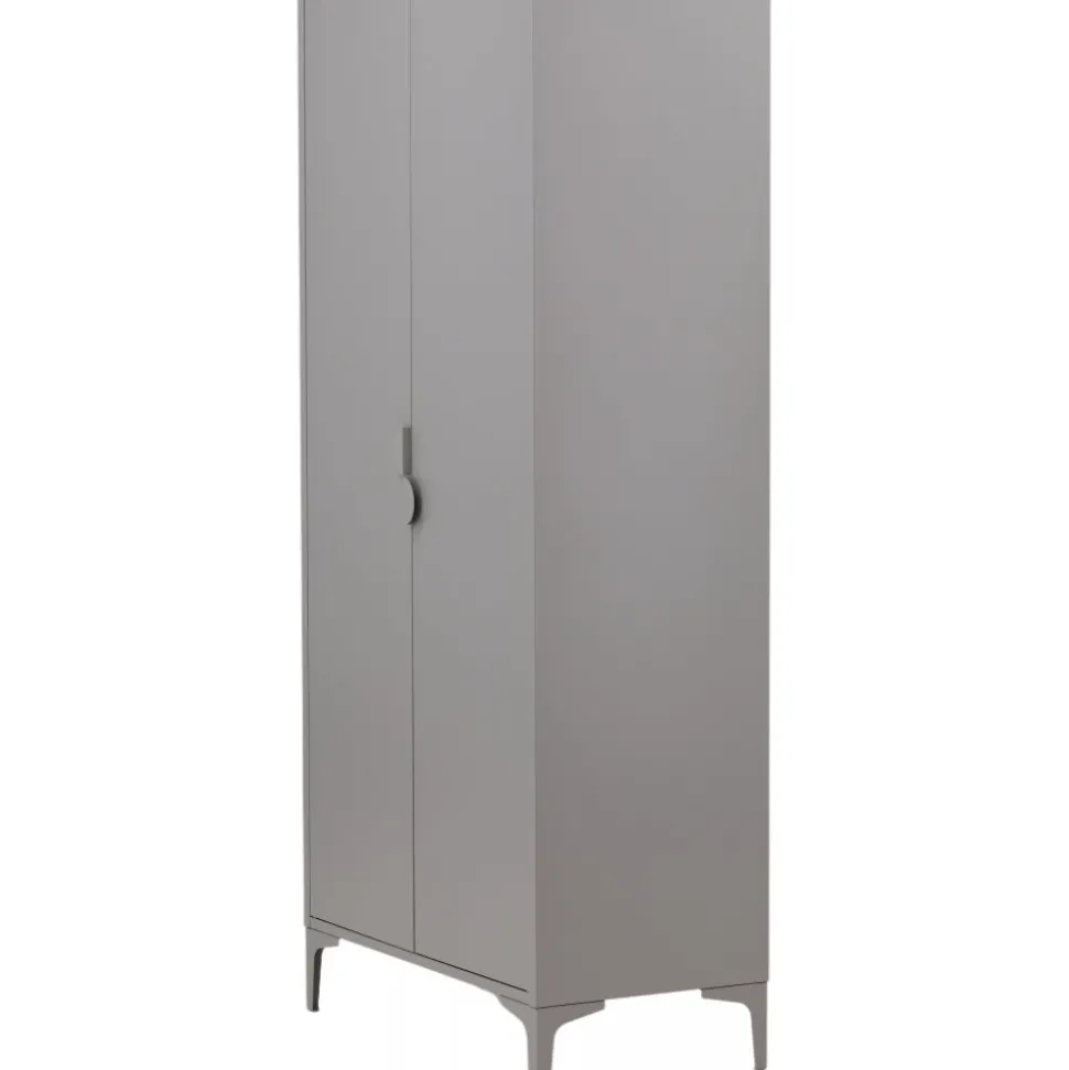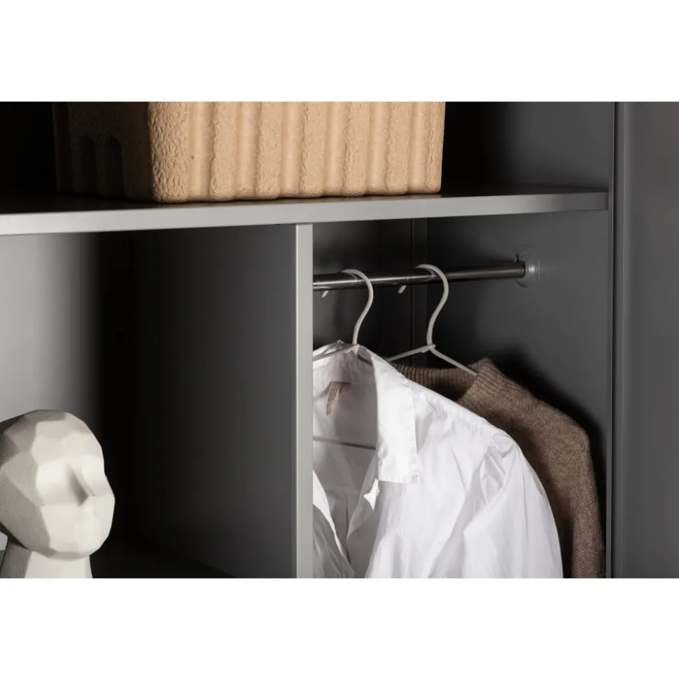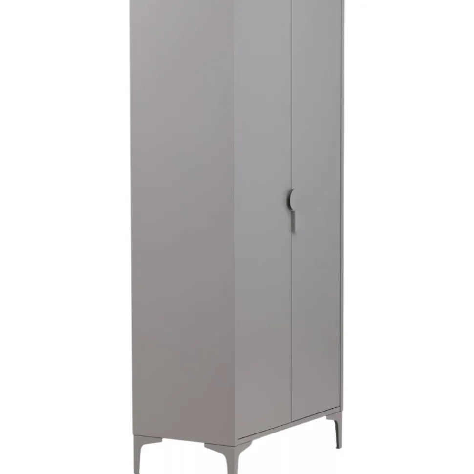 Garderoben från serien Alexander är det perfekta tillskottet till sovrummet. Den här höga garderoben i grått stål har två dörrar som öppnar upp till fyra hyllplan och rymmer även plats för hängare så att de nystrukna kläderna slipper skrynklas. Alexander lyfts upp av fyra nätta ben som skapar ett luftigt intryck och underlättar också för dammsugaren. Investera i mer förvaringsyta till dig själv och få en snygg möbel i ditt hem på köpet.