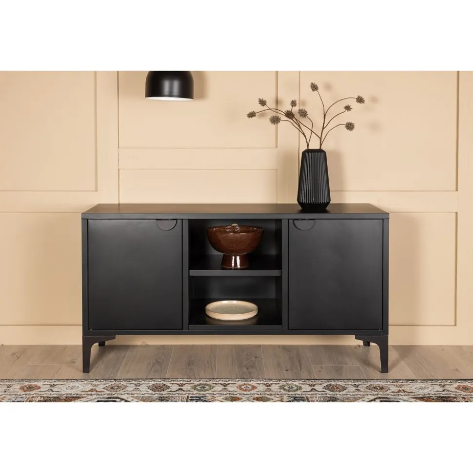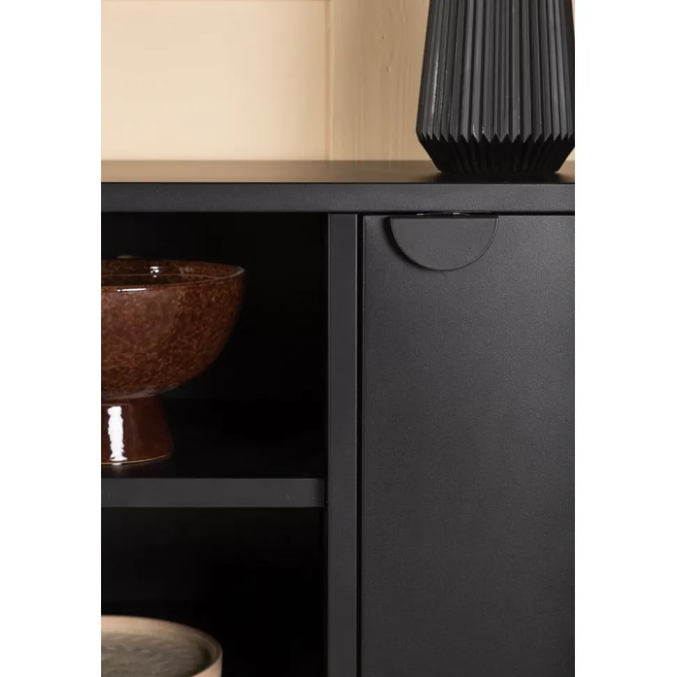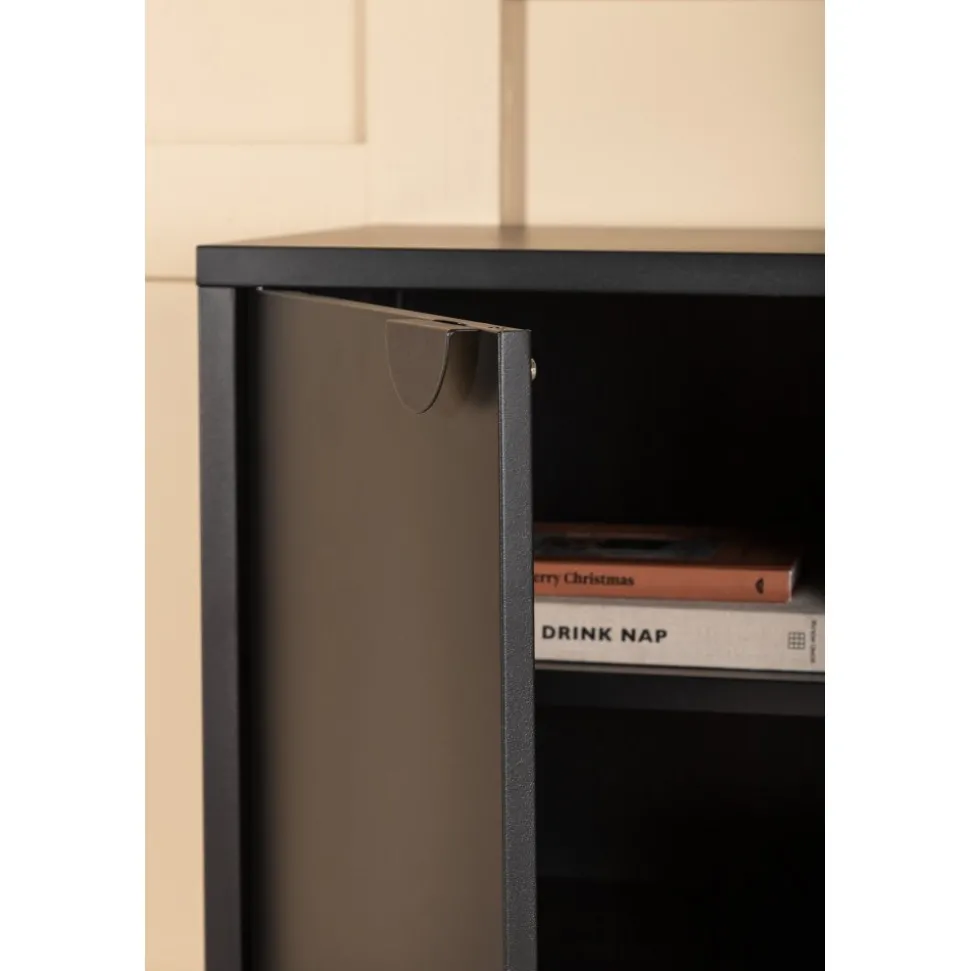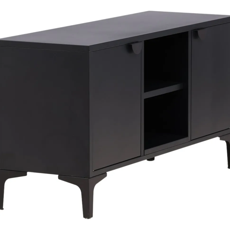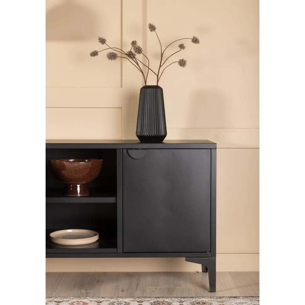 Den perfekta tv-bänken till det moderna och smarta hemmet. Den här bänken från serien Alexander är tillverkad i svart stål och har ett praktiskt djup som möjliggör massa förvaring. Bänken har två hyllplan med två luckor för dold förvaring och en mittdel med öppen förvaring – perfekt för stilrena detaljer såsom en modern vas eller en bok. Designen är helt enkelt otroligt genomtänkt och i linje med trenden likväl som tidlös.