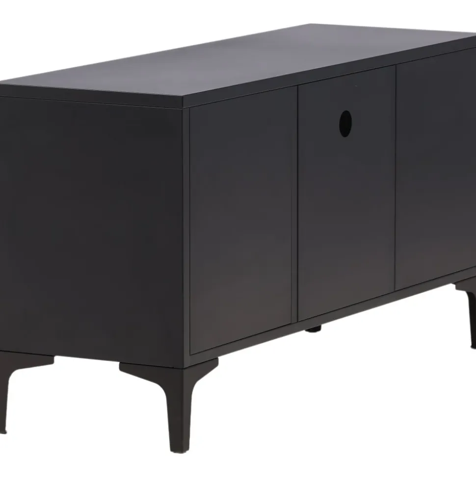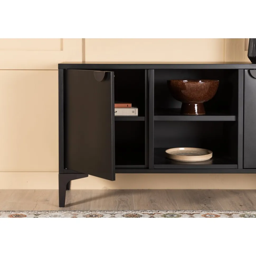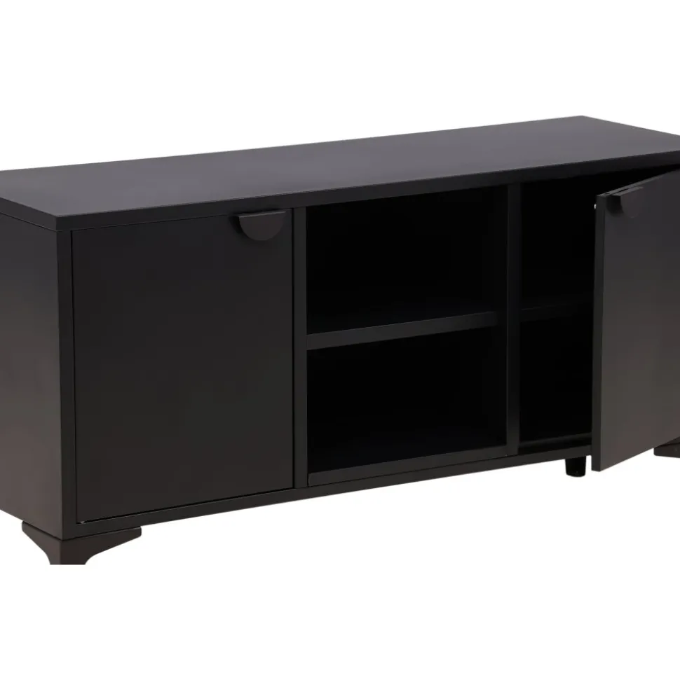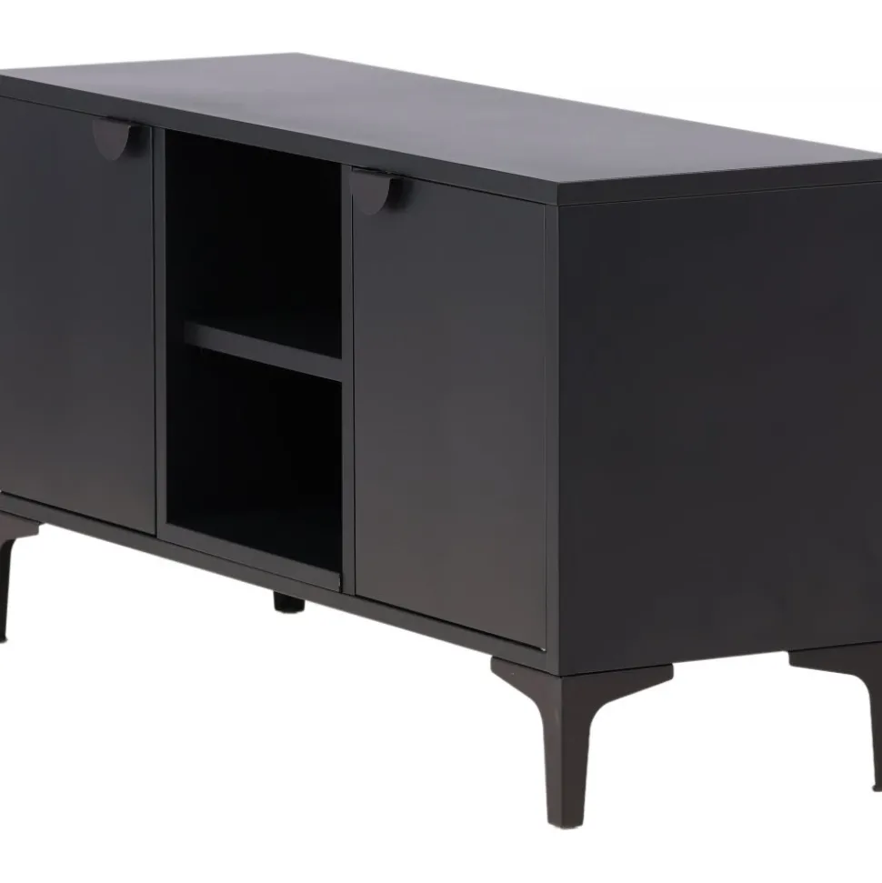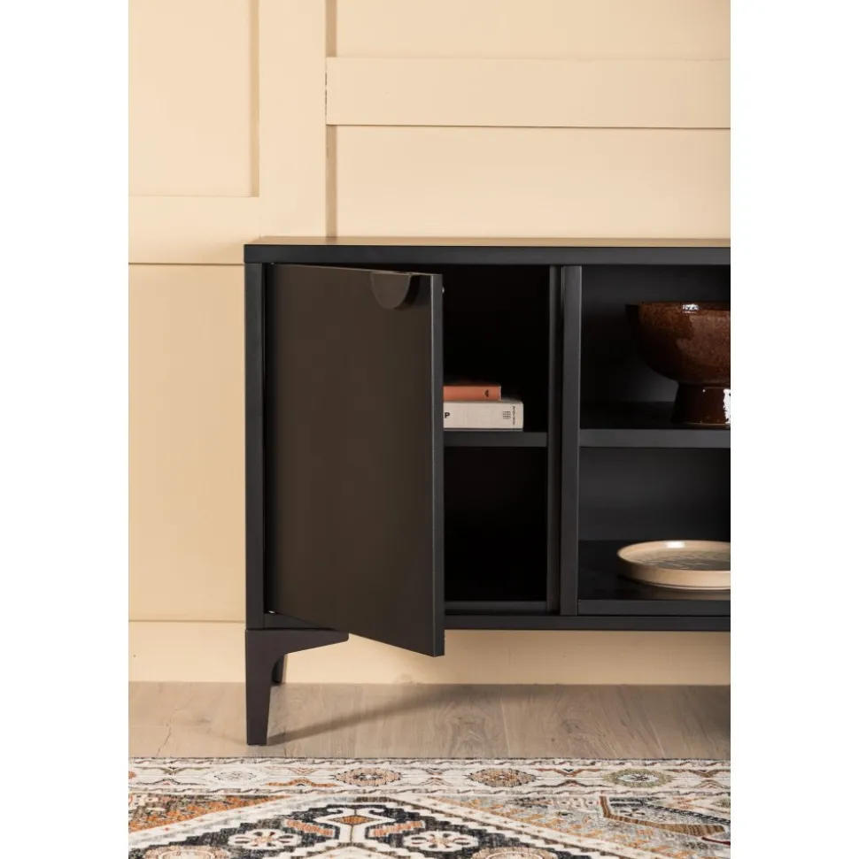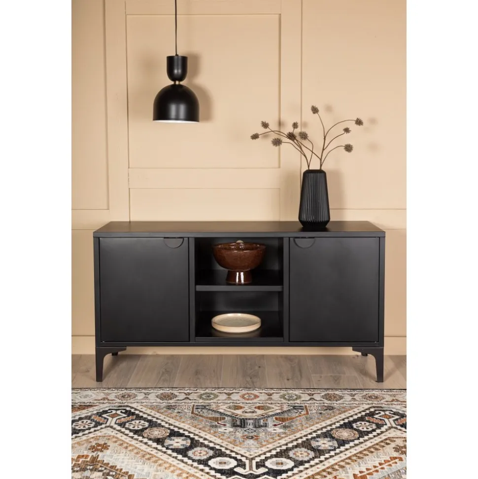 Den perfekta tv-bänken till det moderna och smarta hemmet. Den här bänken från serien Alexander är tillverkad i svart stål och har ett praktiskt djup som möjliggör massa förvaring. Bänken har två hyllplan med två luckor för dold förvaring och en mittdel med öppen förvaring – perfekt för stilrena detaljer såsom en modern vas eller en bok. Designen är helt enkelt otroligt genomtänkt och i linje med trenden likväl som tidlös.