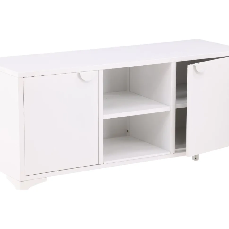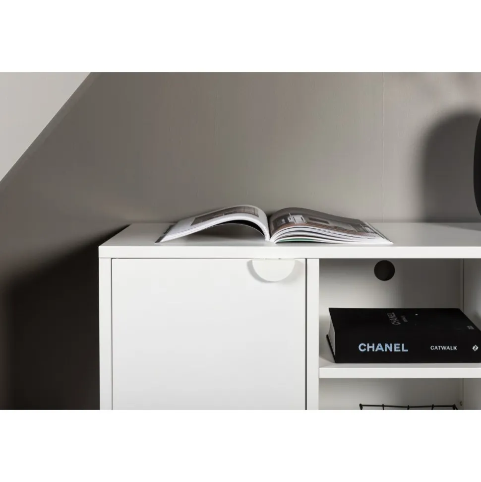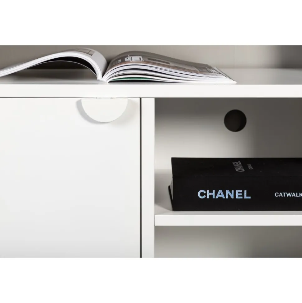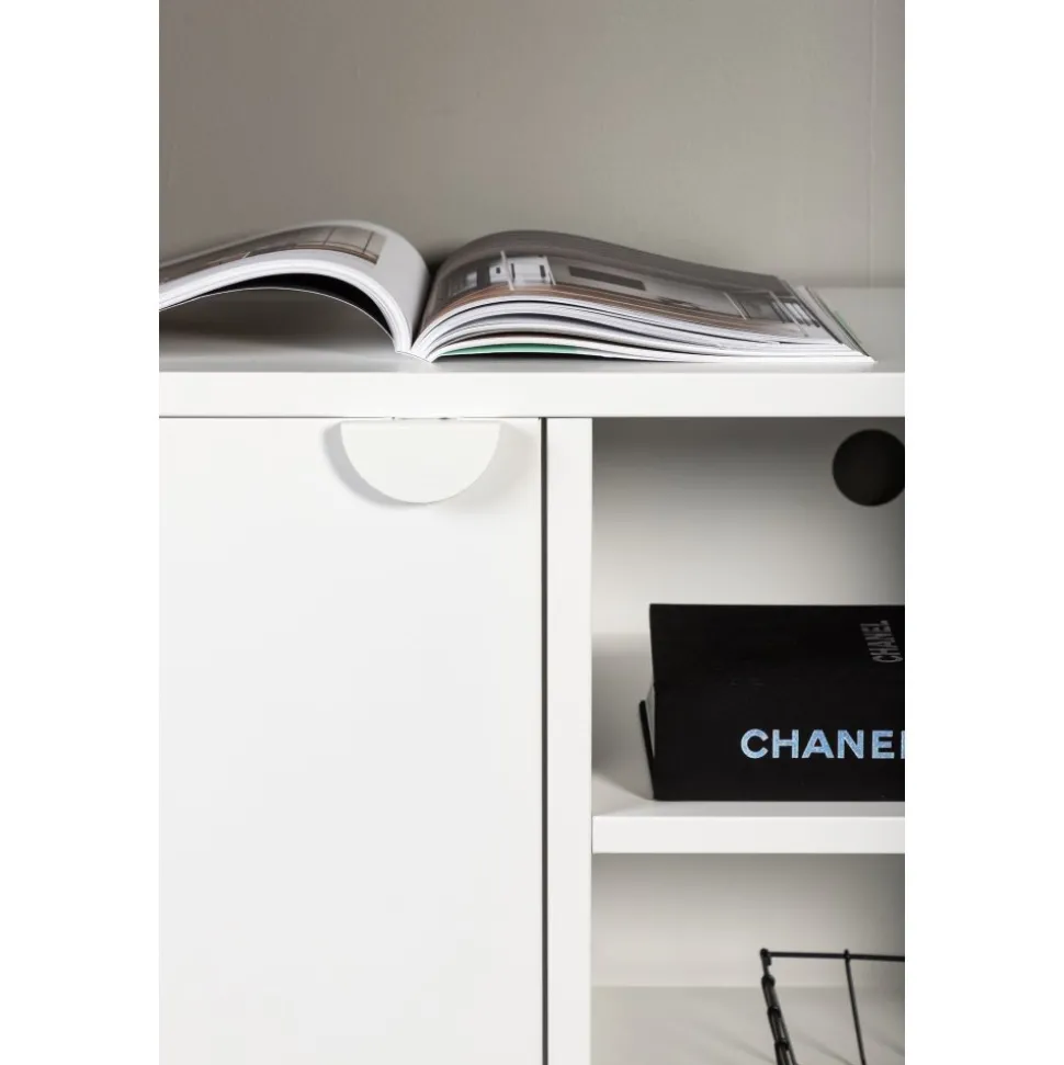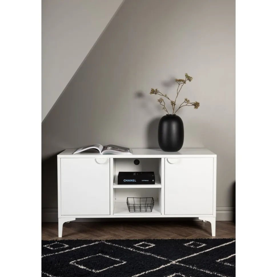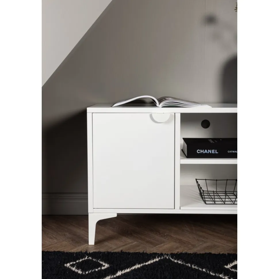 Den perfekta tv-bänken till det moderna och smarta hemmet. Den här bänken från serien Alexander är tillverkad i vitt stål och har ett praktiskt djup som möjliggör massa förvaring. Bänken har två hyllplan med två luckor för dold förvaring och en mittdel med öppen förvaring – perfekt för stilrena detaljer såsom en modern vas eller en bok. Designen är helt enkelt otroligt genomtänkt och i linje med trenden likväl som tidlös.