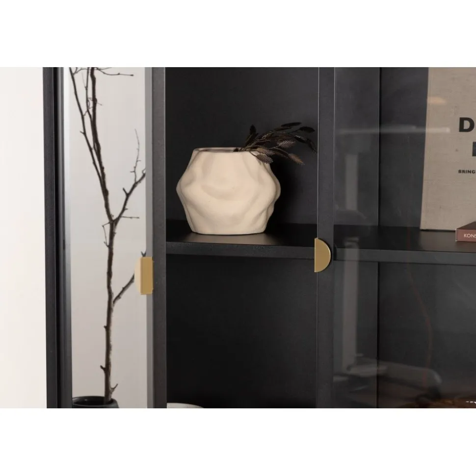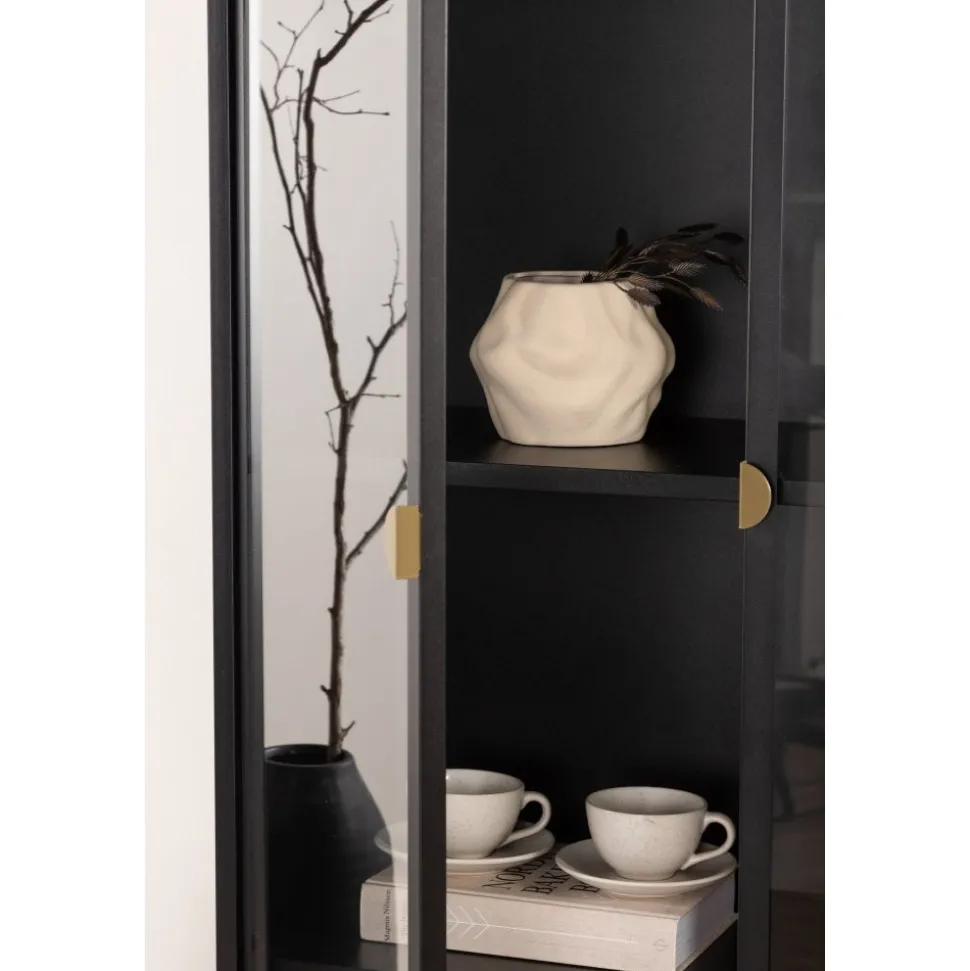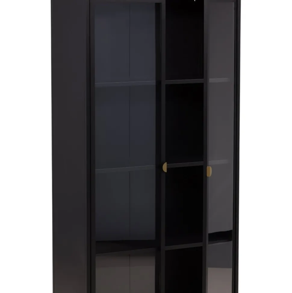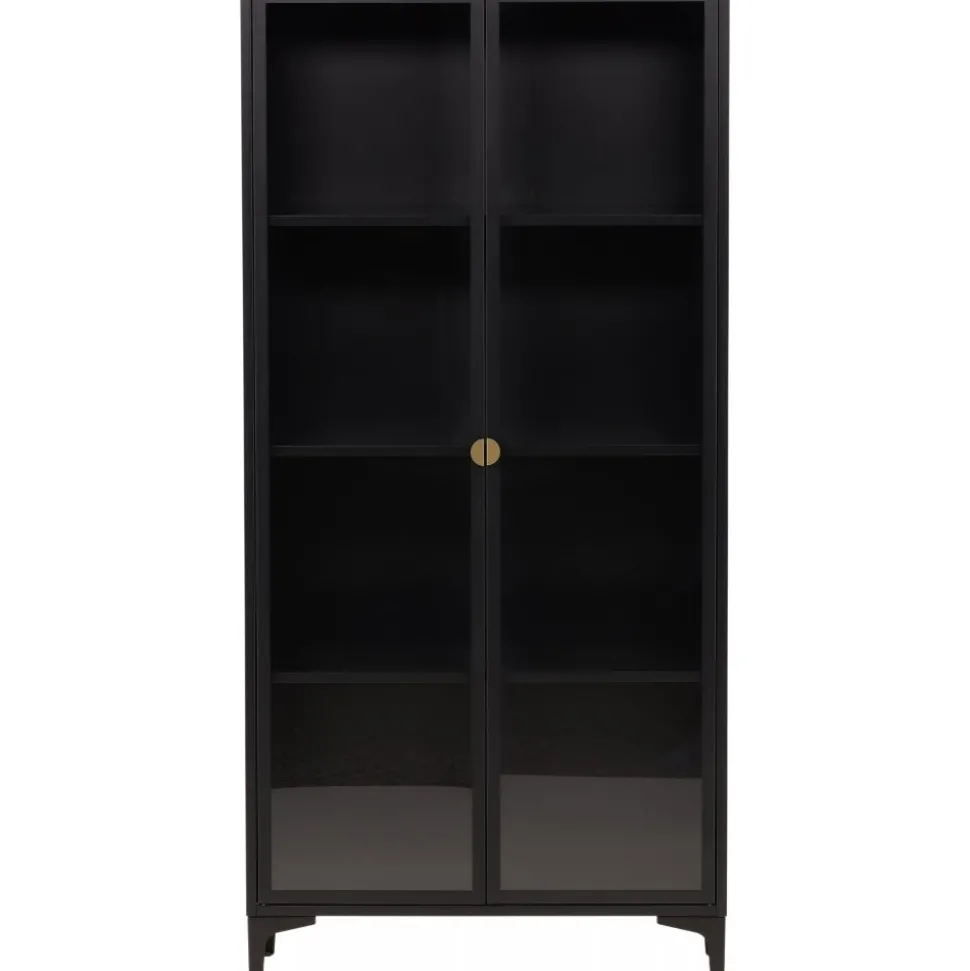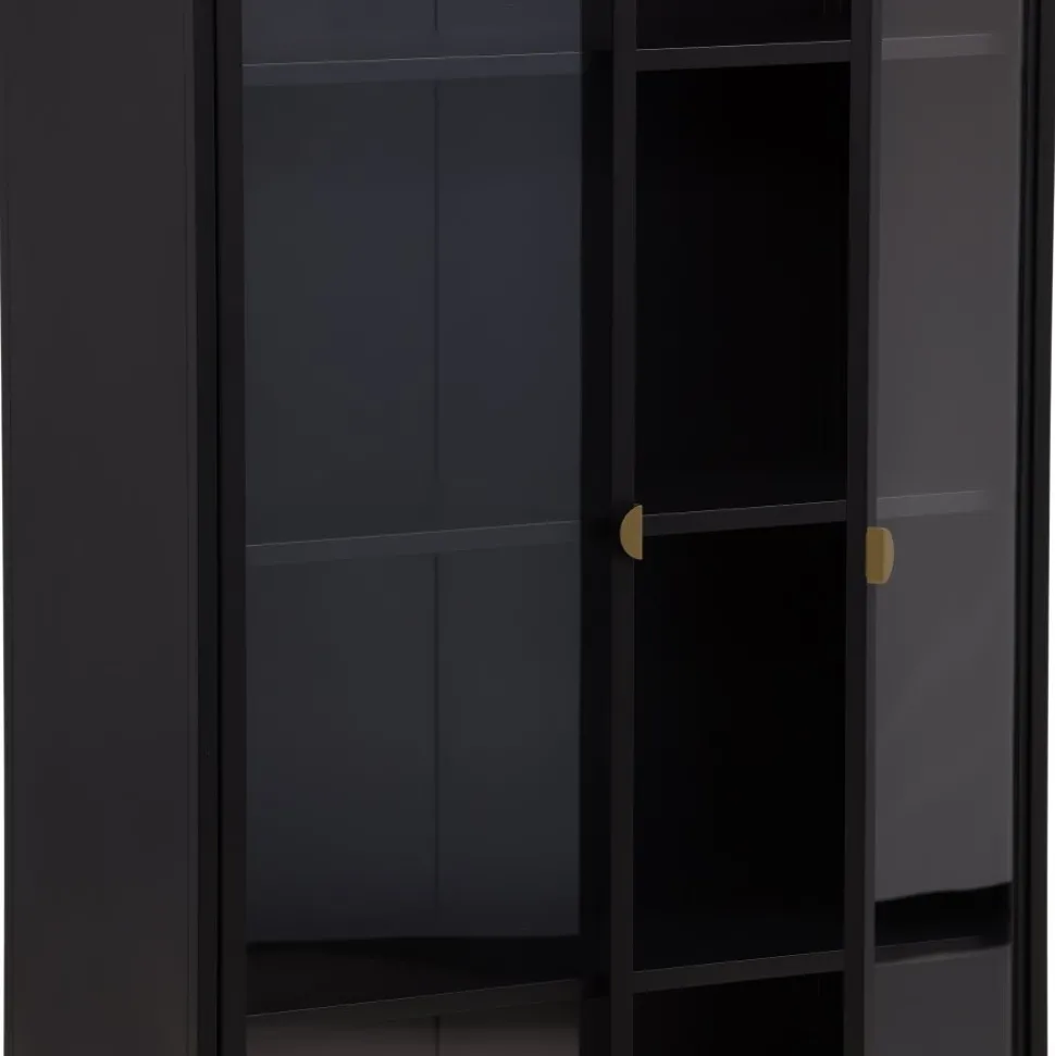 Vitrinskåpet är ett populärt tillskott till inredningen med eleganta förvaringsmöjligheter. Skåpet från serien Alexander har en modern design med raka strukturer, tillverkad i pulverlackerat svart stål. Skåpet har två höga dörrar i glas som ger härligt ljusinsläpp i skåpet och fyra avlastningsytor för ditt finporslin eller vackra inredningsdetaljer. Det här är ett som erbjuder det bästa av två världar helt enkelt – välj vad du vill visa upp och vad som behöver smart förvaring. Lättare montering krävs.