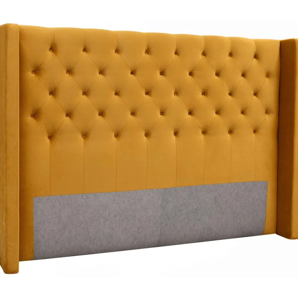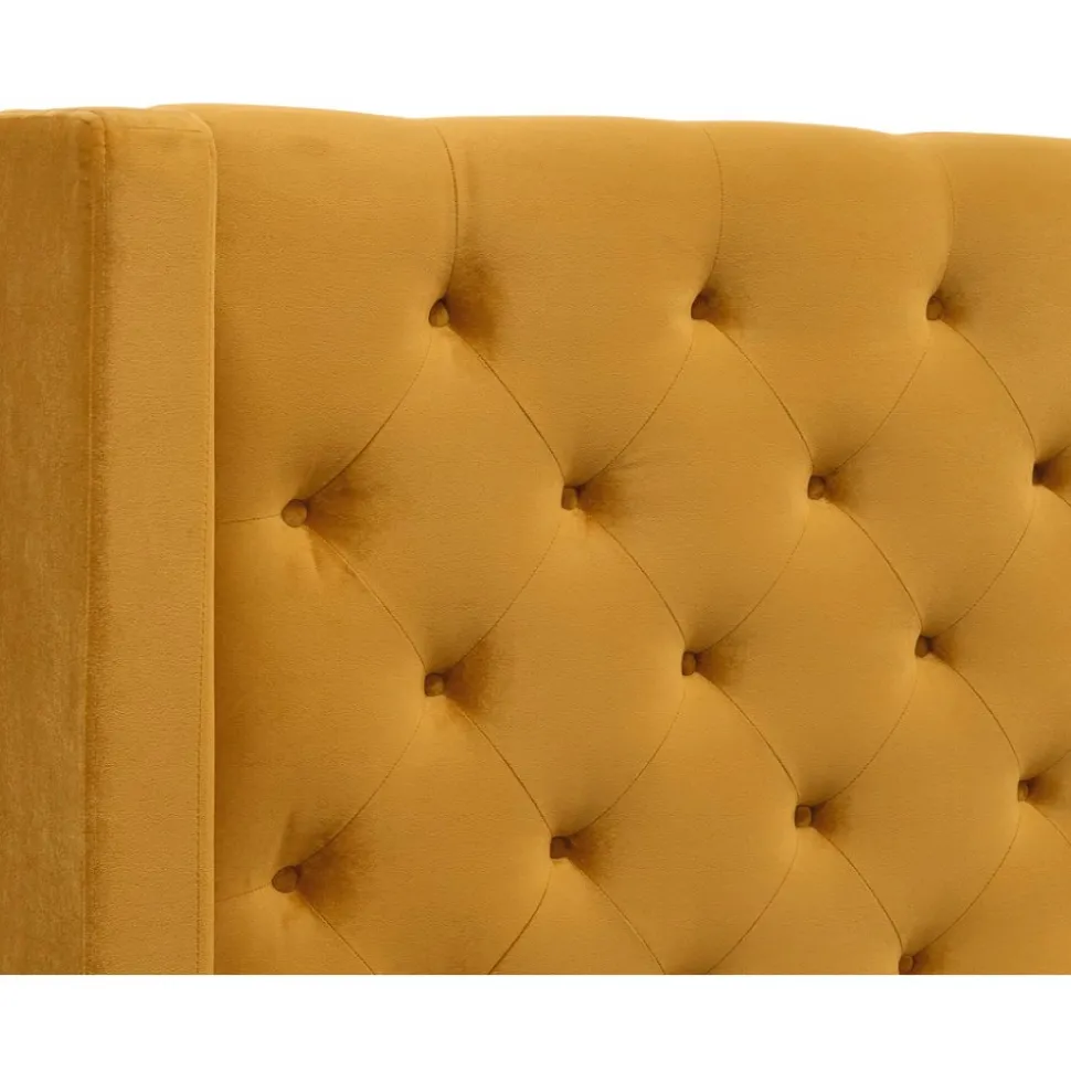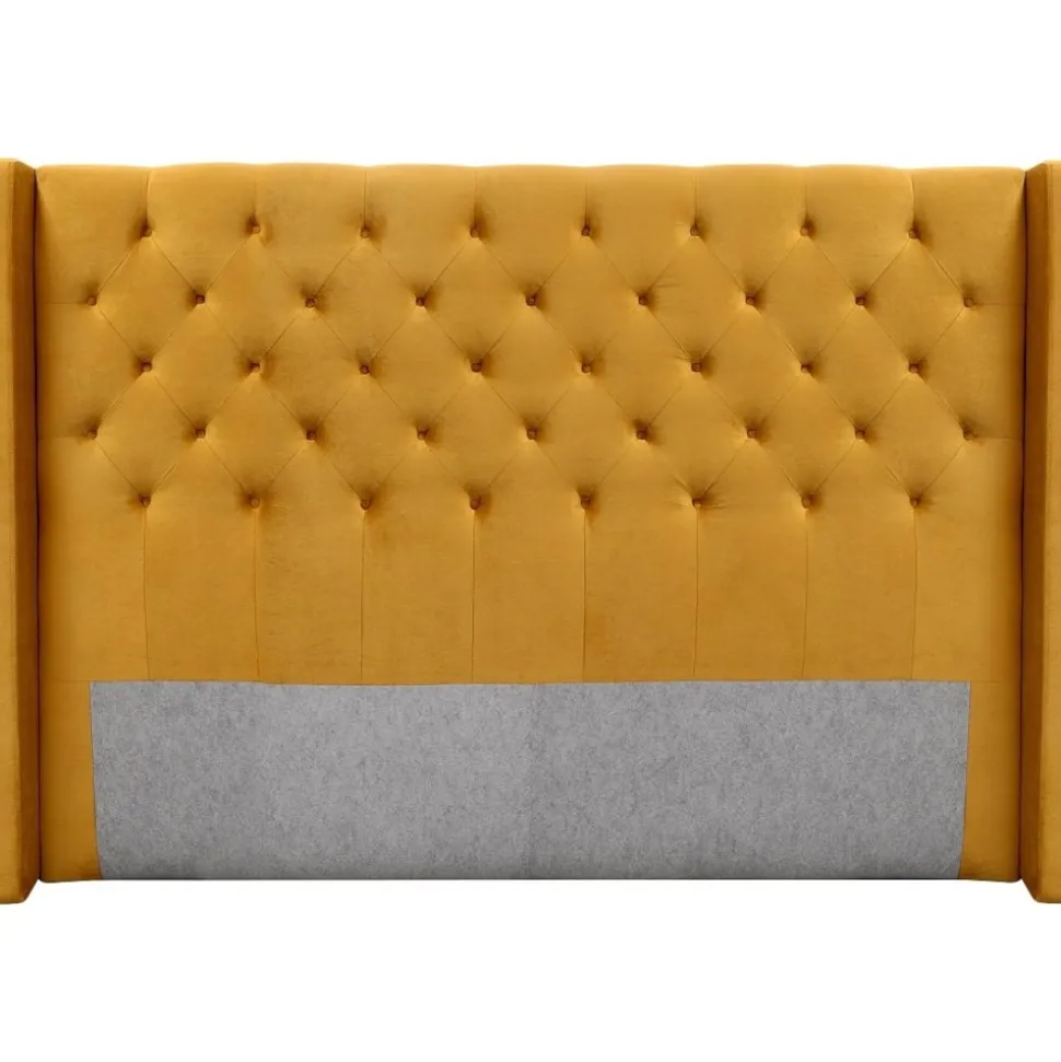 Med Almedal kan man välja den bredden man har på sängen. Sänggaveln är klädd i ett guldfärgat sammetstyg med en mjuk känsla. Snygg design med djuphäftade knappar för att ge ett lyxigt utryck i sovrummet.