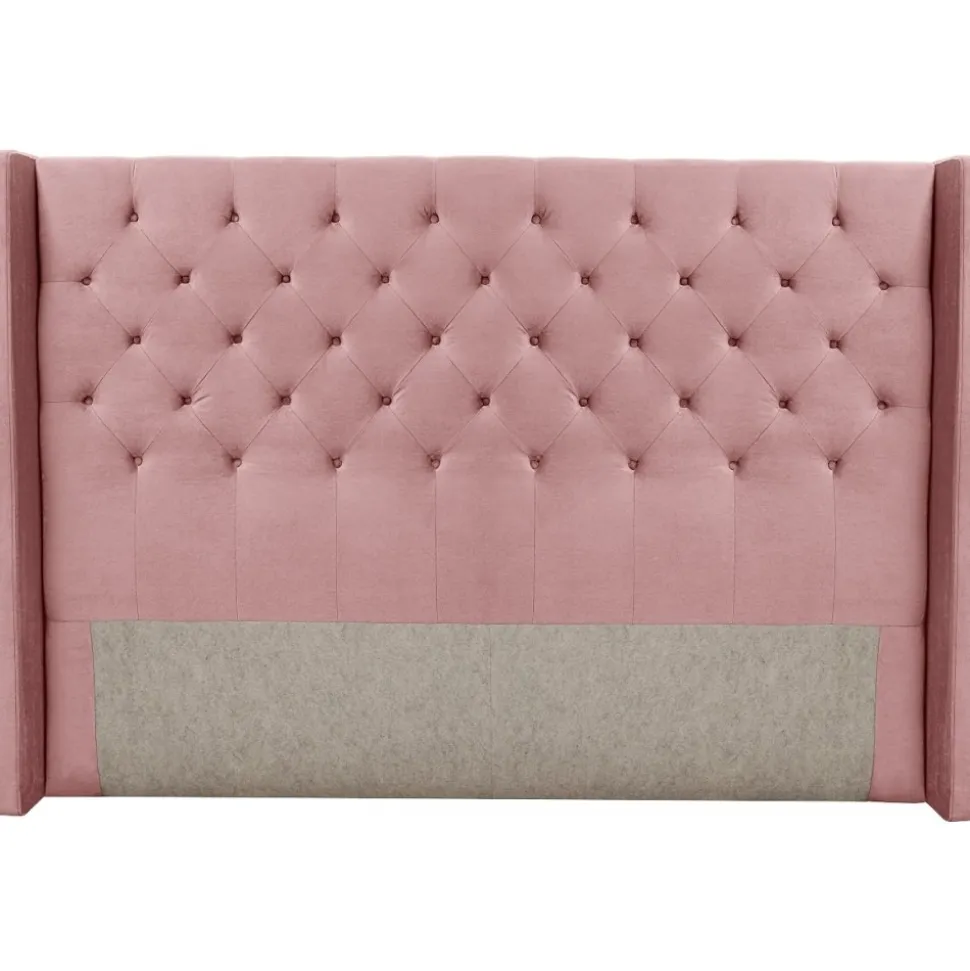 Med Almedal kan man välja den bredden man har på sängen. Sänggaveln är klädd i ett gammelrosa mjukt sammetstyg. Snygg design med djuphäftade knappar för att ge ett lyxigt utryck i sovrummet.