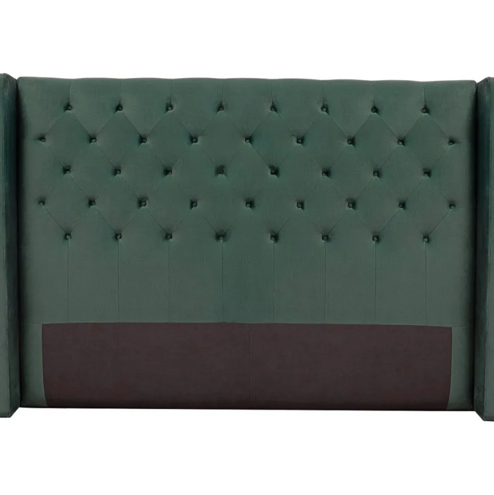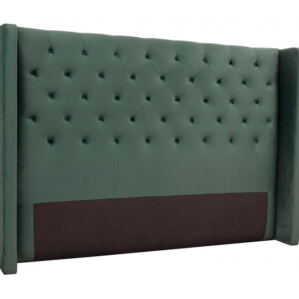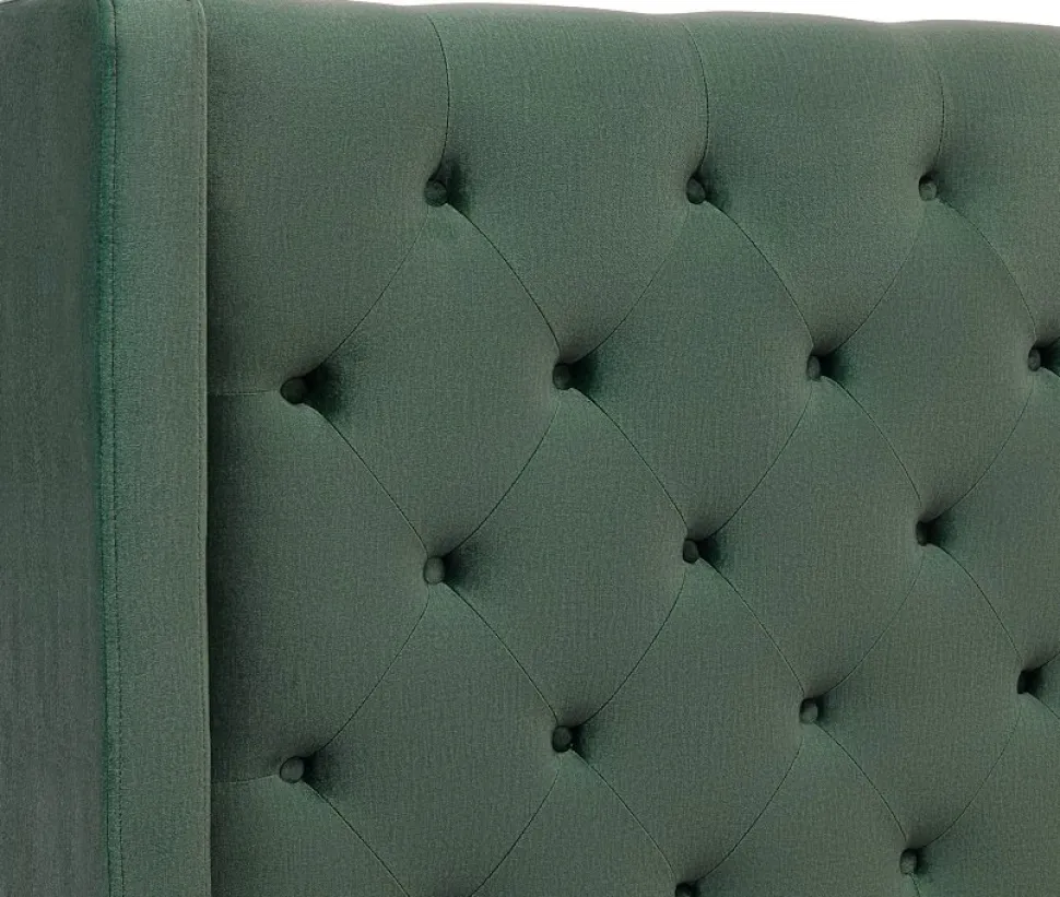 Med Almedal kan man välja den bredden man har på sängen. Sänggaveln är klädd i ett smaragdgrönt mjukt sammetstyg. Snygg design med djuphäftade knappar för att ge ett lyxigt utryck i sovrummet.