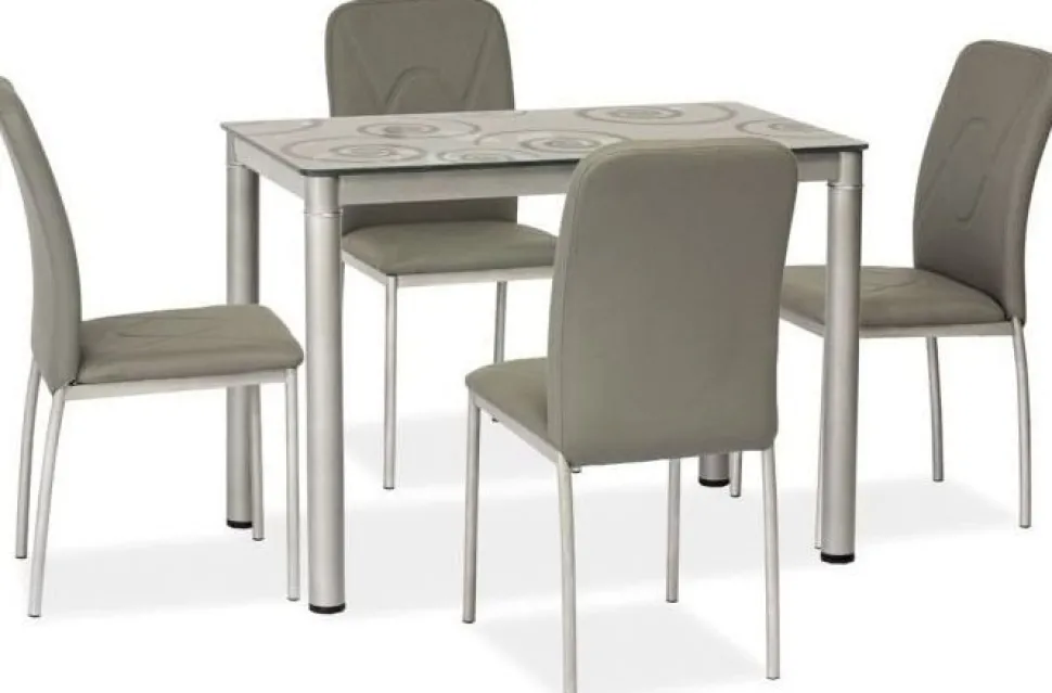 Ett härligt med en stilren design. Underredet är tillverkat av grå metall och bordsskivan är av härdat glas med snyggt mönster.
