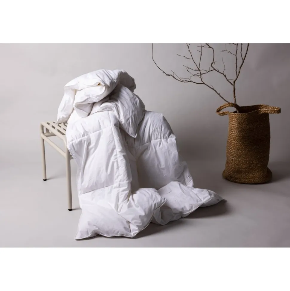 Täcke som lämpar sig utmärkt som vintertäcke eller när det börjar bli lite kyligt ute. Tillverkat i bomullstyg, fjäder & polyfiberblandning. Gosa ner dig under ett täcke med dunliknande känsla och bädda sängen skönt och inbjudande.