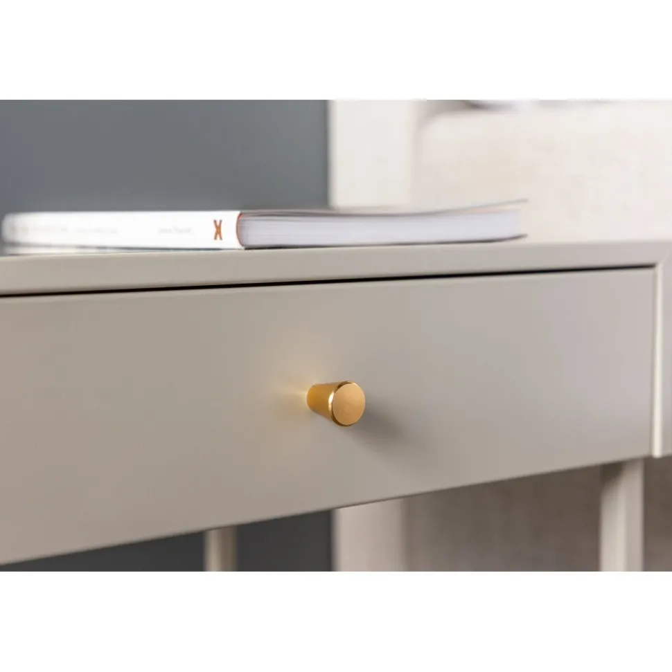 Ge ditt sovrum en modern touch med hjälp av vårt stilrena, beige i skandinavisk stil från serien Bakal! Med en magisk kombination av tidlös design och nordisk inspiration kommer detta stilrena sängbord i beige att förvandla ditt sovrum till en plats av både modemedvetenhet och ordning. Sängbordet har en smart låda för dold förvaring med en vacker mässingsfärgad knopp som blir pricken över i:et. Förvara din kvällsbok, glasögon eller småskatter på ett smidigt sätt nära till hands. Men viktigt att tillägga är att Bakal sängbordet givetvis inte bara är begränsat till sovrummet. Med sina rena linjer och luftiga form är det lika passande som i vardagsrummet eller extra förvaring i badrummet. Det skapar en harmonisk atmosfär oavsett var det placeras och blir en omedelbar förlängning av din personliga inredningsstil!