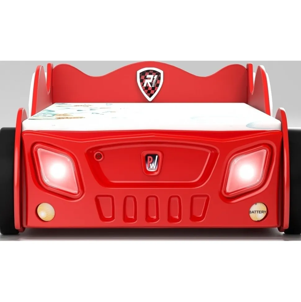 Många bilintresserade barn drömmer om en tur i en F1-bil, låt fantasin flöda hos barnen redan nu. Den här barnsängen med mjuka runda former i MDF är både komfortabel och stilig i barnrummet.