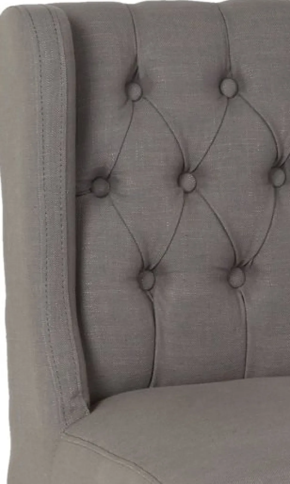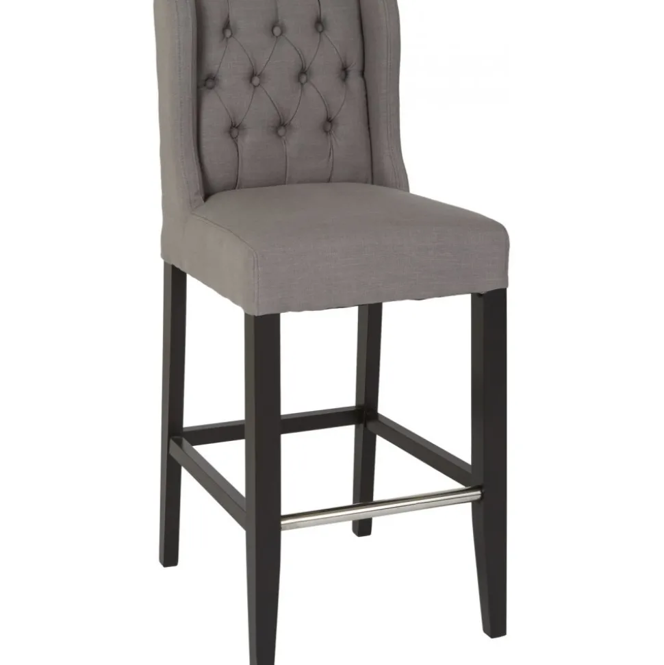 En högkvalitativ med mjuk stoppad rygg och sits i grått tyg. Massiva svarta träben med en metall-list för fötterna. Maximal sittkomfort.