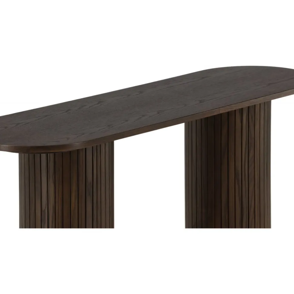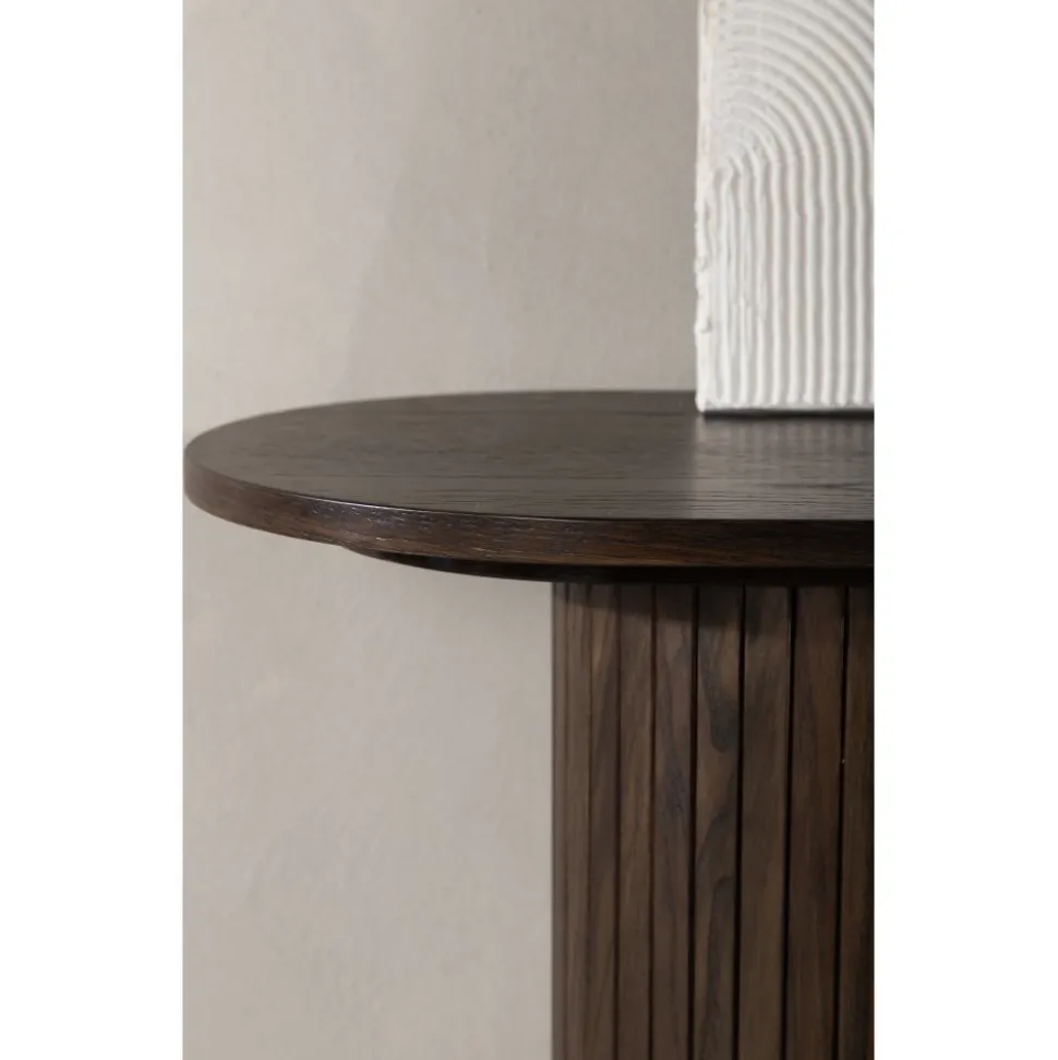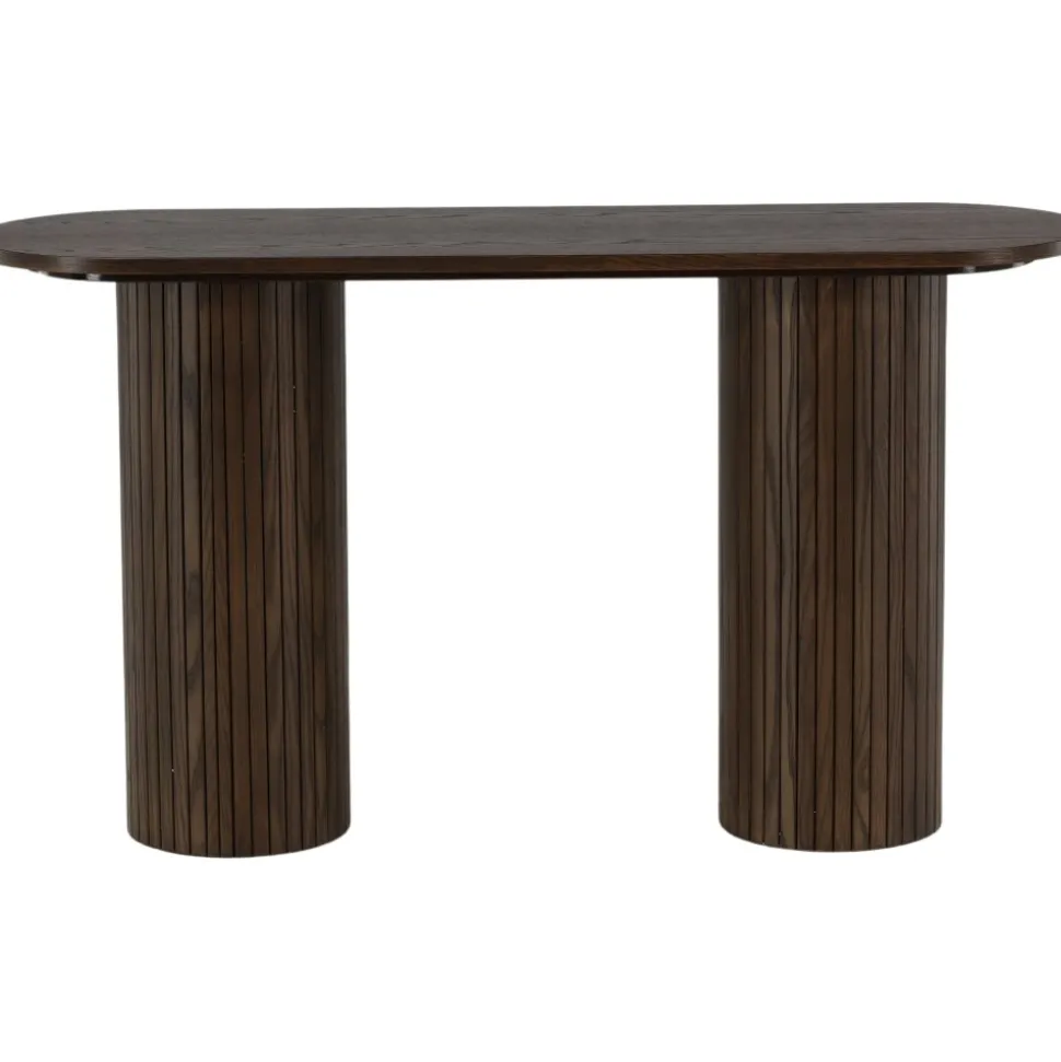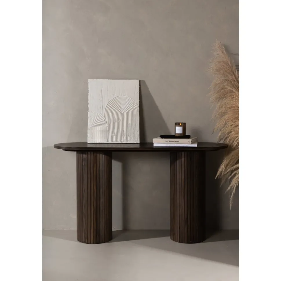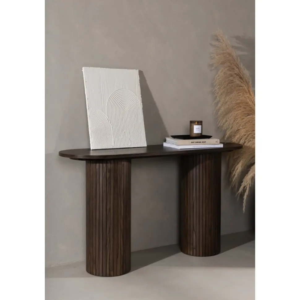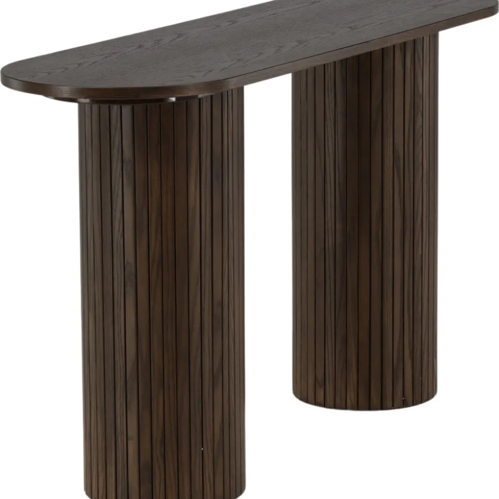 Ge vardagsrummet eller hallen ett modernt lyft med det här läckra avlastningsbordet. Bordet är genomgående tillverkat av MDF med faner i en mockafärgad finish och har en robust stomme med två cylinderformade ben i ribbad design. Den genomtänkta helheten med mjuka nordiska former skapar en varm och modern känsla till rummet. Bordet är lika snyggt som praktiskt och helt i linje med trenderna – ett perfekt tillskott till hemmet!