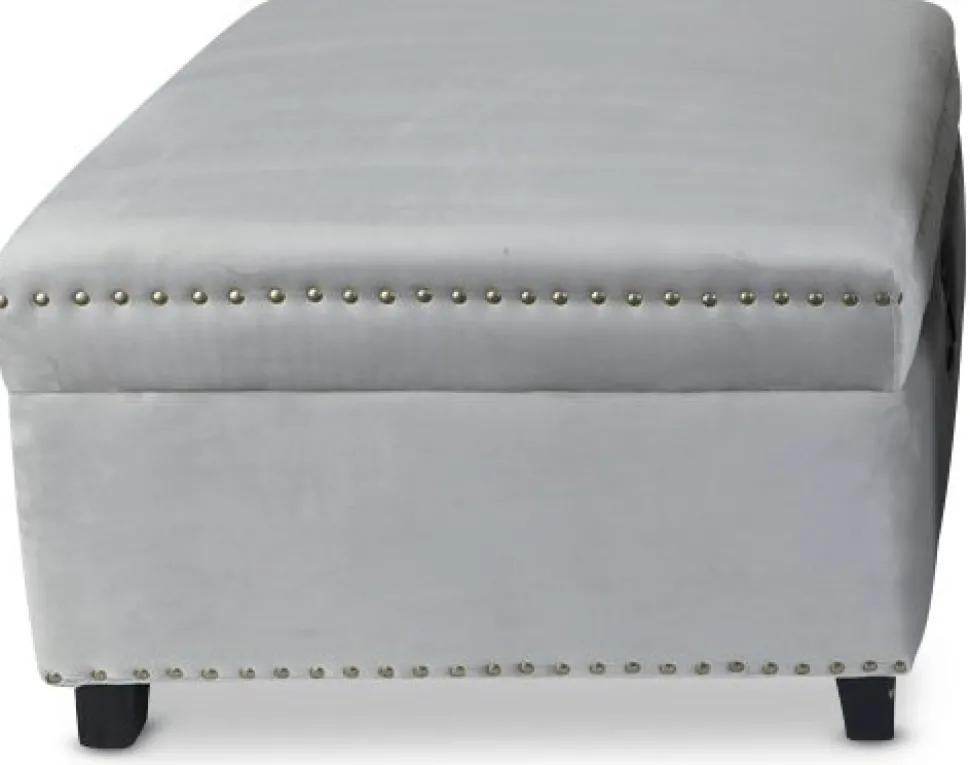 Birmingham 60x60 cm fotpall med förvaring - Beige sammet / Nitar