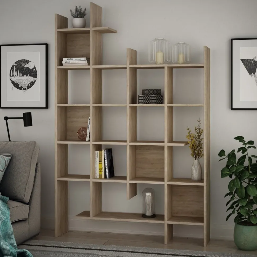 Bokhylla i ekmönstrad melaminbelagd spånskiva med en stilren och praktisk design. Manco erbjuder generöst med förvaringsyta för böcker, dekorationer eller andra föremål, och passar lika bra i vardagsrum som i kontor eller hall. Ytan är slitstark och lätt att torka av perfekt för vardagligt bruk.