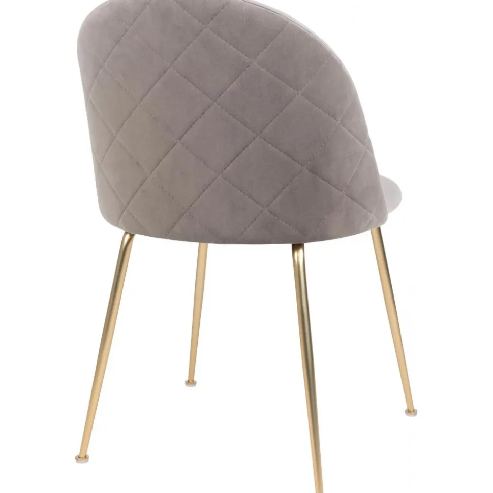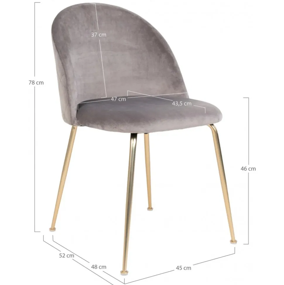 Matgrupp bestående av Bolzano matbord i vitt med guldfärgat underrede och 4 st Geneve matstolar i grått sammetstyg och guldfärgade ben. Levereras omonterad.