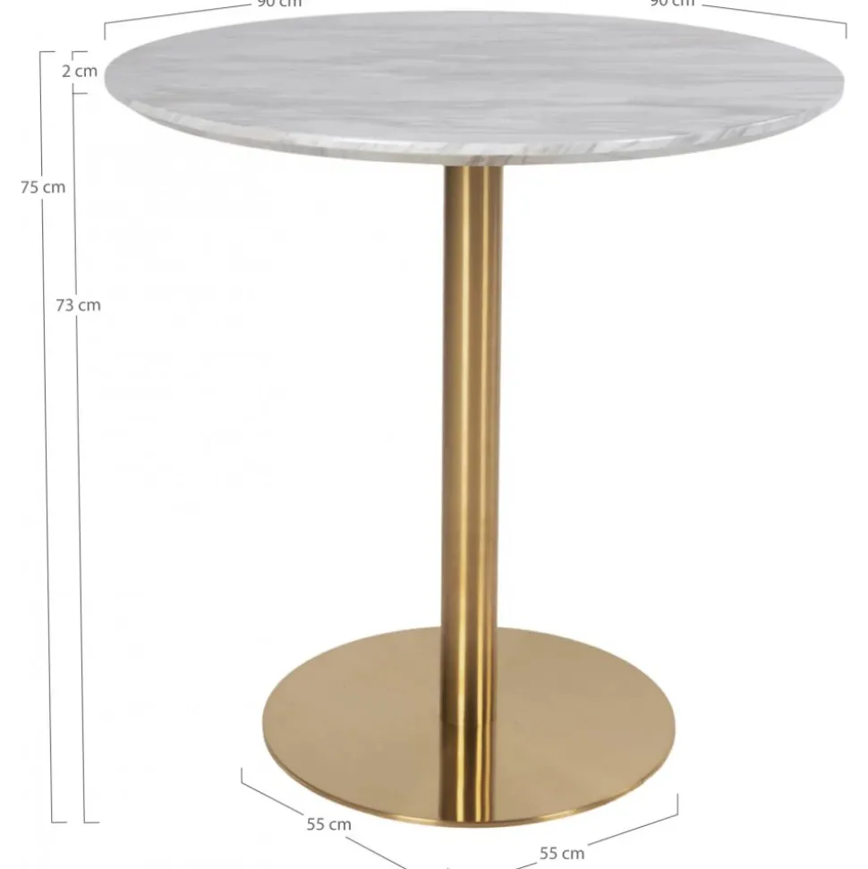 Matgrupp bestående av Bolzano matbord i vitt med guldfärgat underrede och 4 st Geneve matstolar i grått sammetstyg och guldfärgade ben. Levereras omonterad.