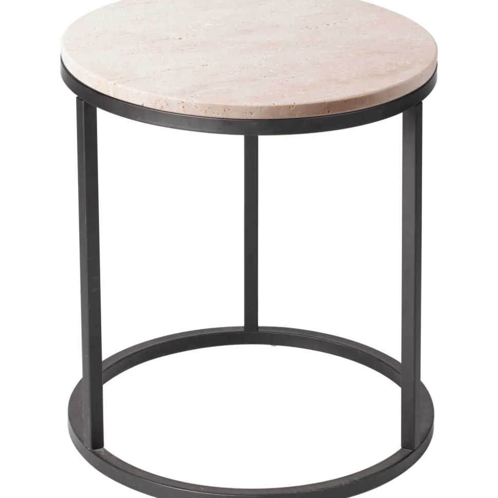 Denna bordsskiva i kalksten med en diameter på 50 cm och en tjocklek på 2 cm. Varje skiva är unik, med variationsrika nyanser och texturer som skapar en distinkt känsla och gör varje till ett konstverk i sig. Kalkstenens naturliga skönhet ger en varm och inbjudande atmosfär i ditt hem.
