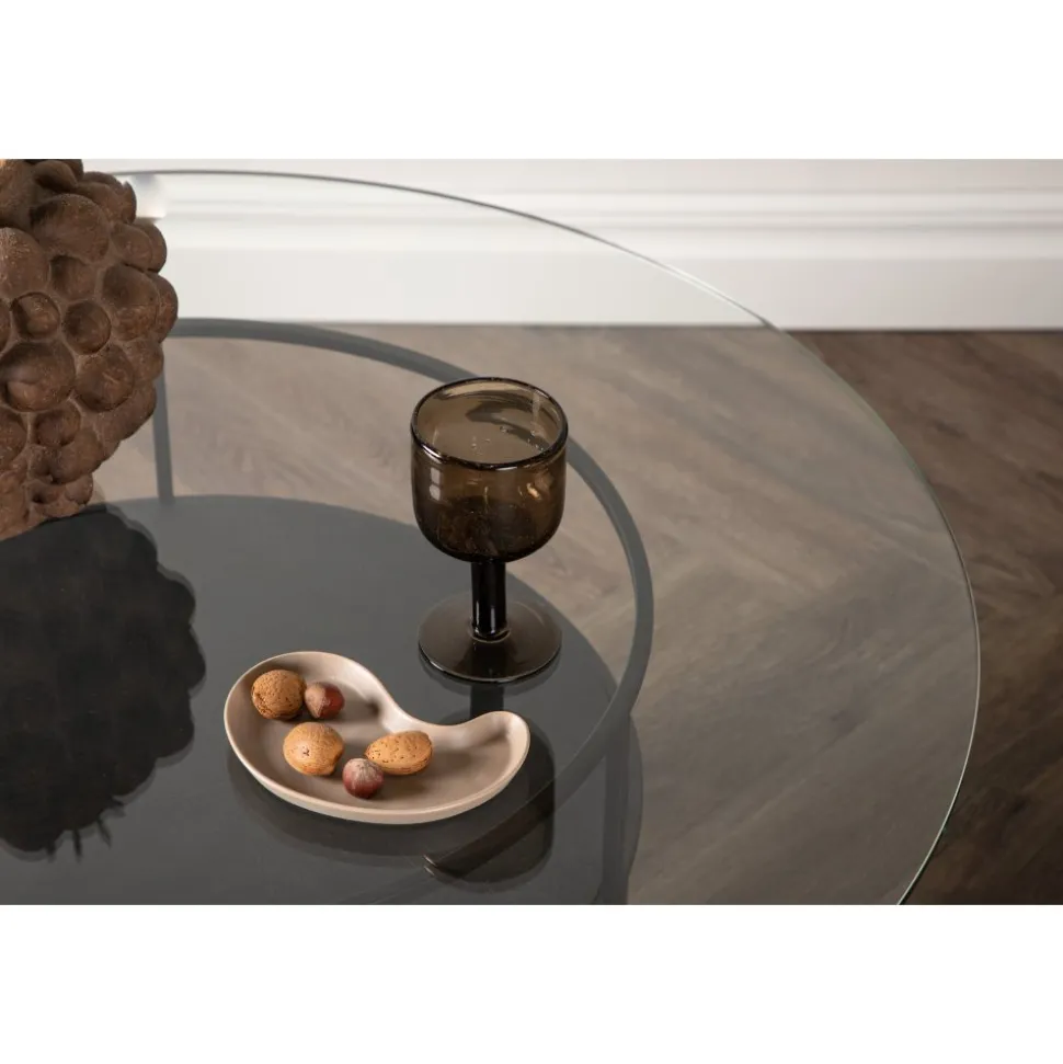 Soffbord som är lika iögonfallande som praktiskt med sin smarta storlek och modemedvetna design. Bordet har en robust, cylinderformad stomme i svart metall med en upplyft glasskiva som bordsyta. Placera på den mysiga mattan, framför soffan och pryd med vackra ljusstakar eller dekorationer för att skapa den perfekta trivseln i ditt hem.