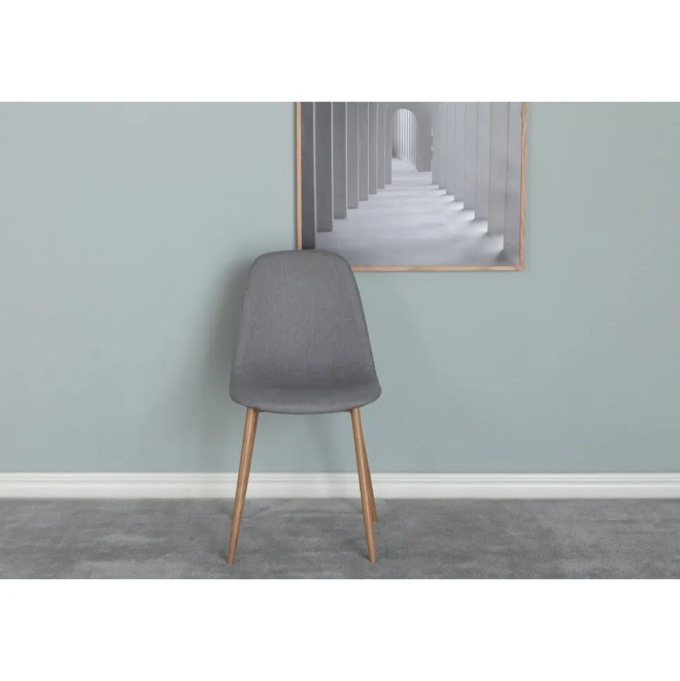 Matstol av metall och plywood, klädd med polyestertyg.
