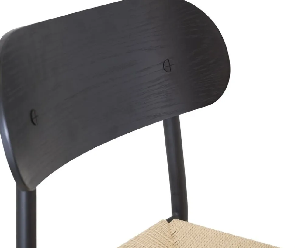 Stol med beige naturfiber i sitsen och svart stomme. Ben i metall.