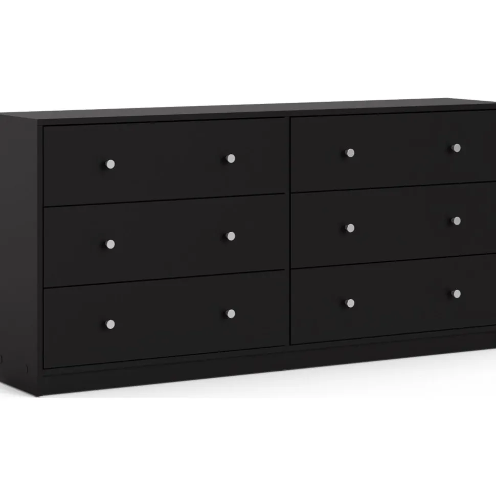Byrå svart 6 lådor 143 cm bred + Möbeltassar