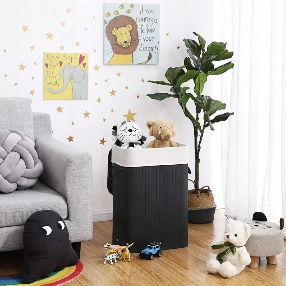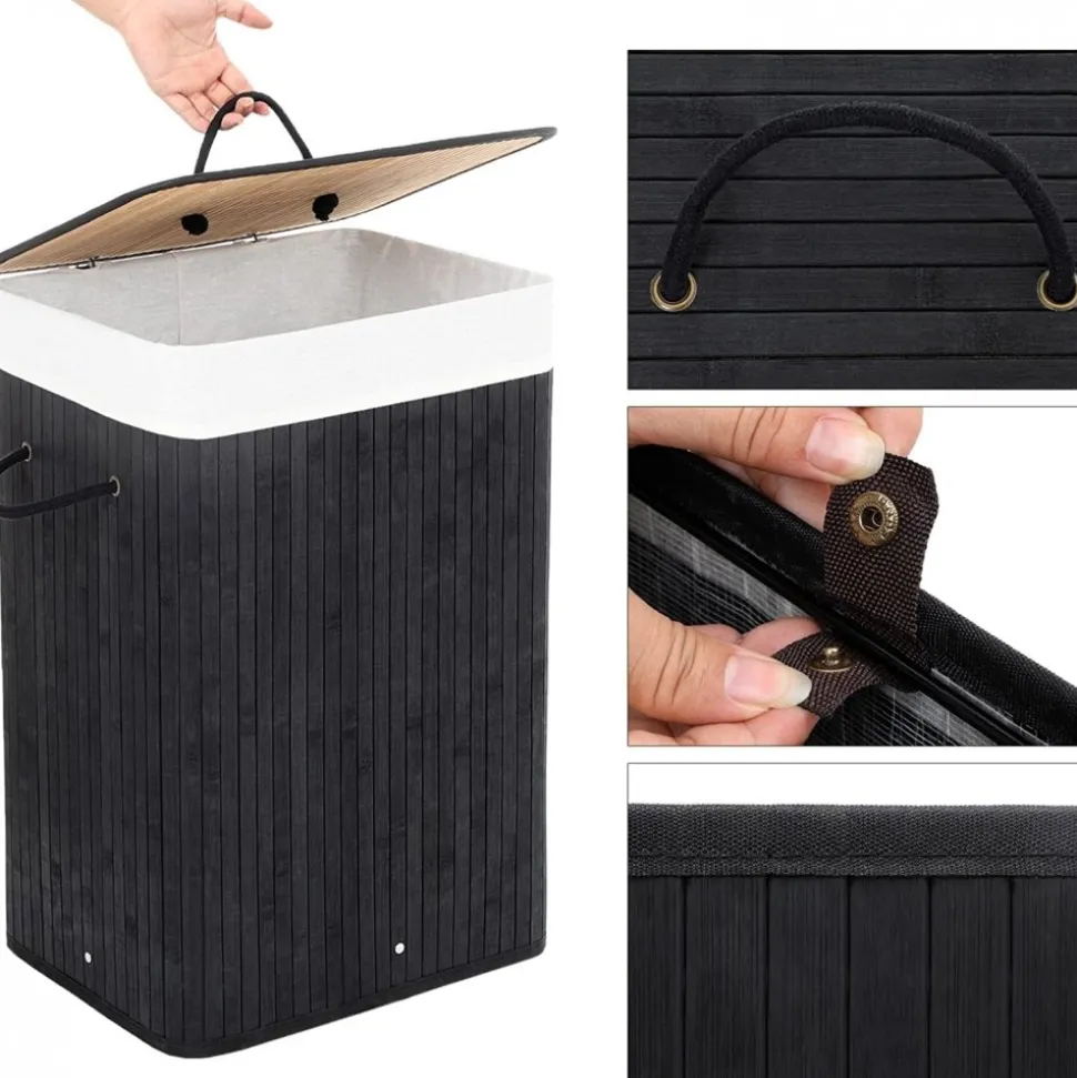 Tvättkorg av bambu med avtagbar innerpåse av bomull. Rymmer 72 liter.