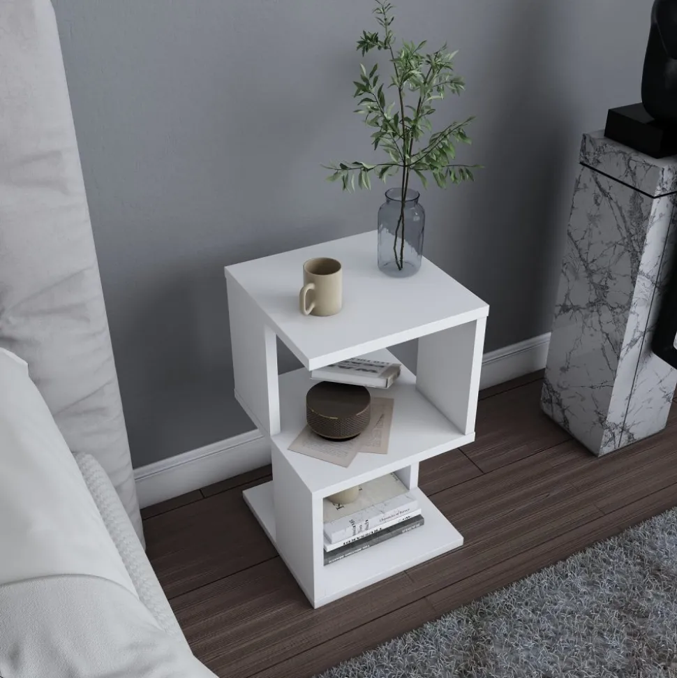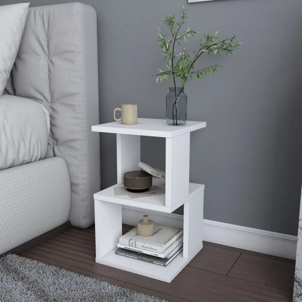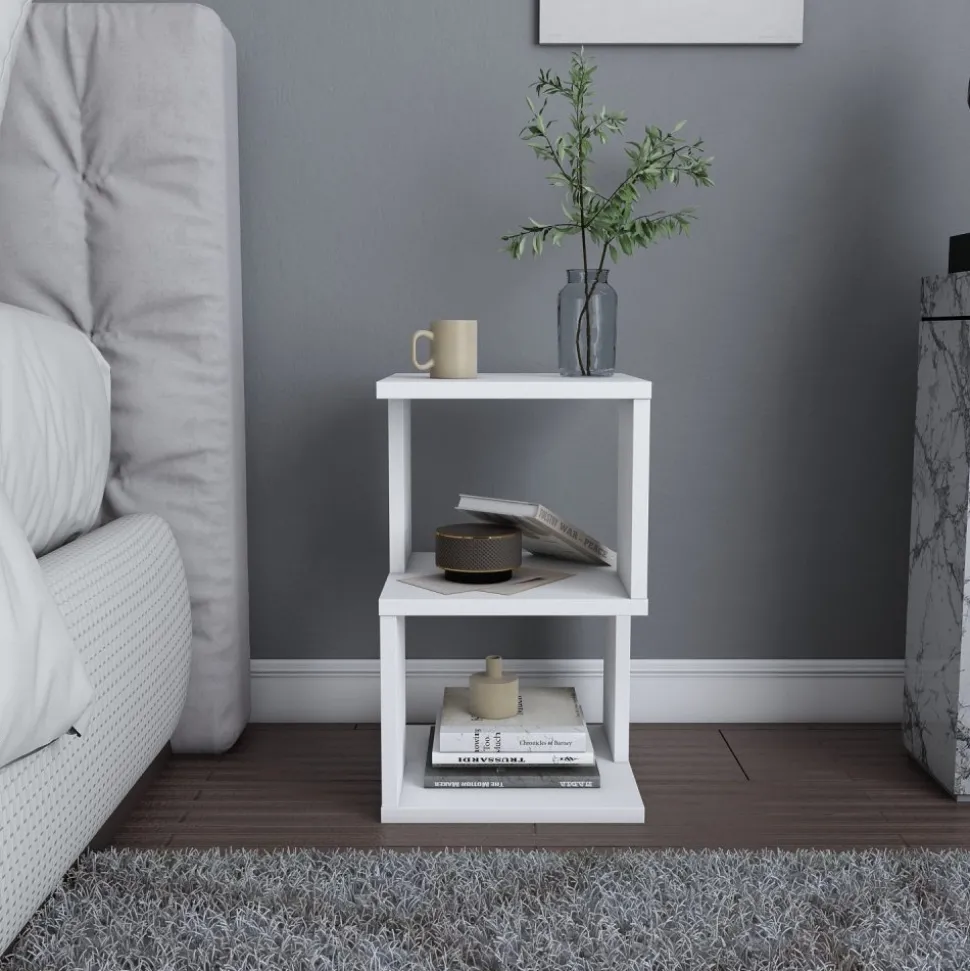 Sängbord av melaminbelagd spånskiva.