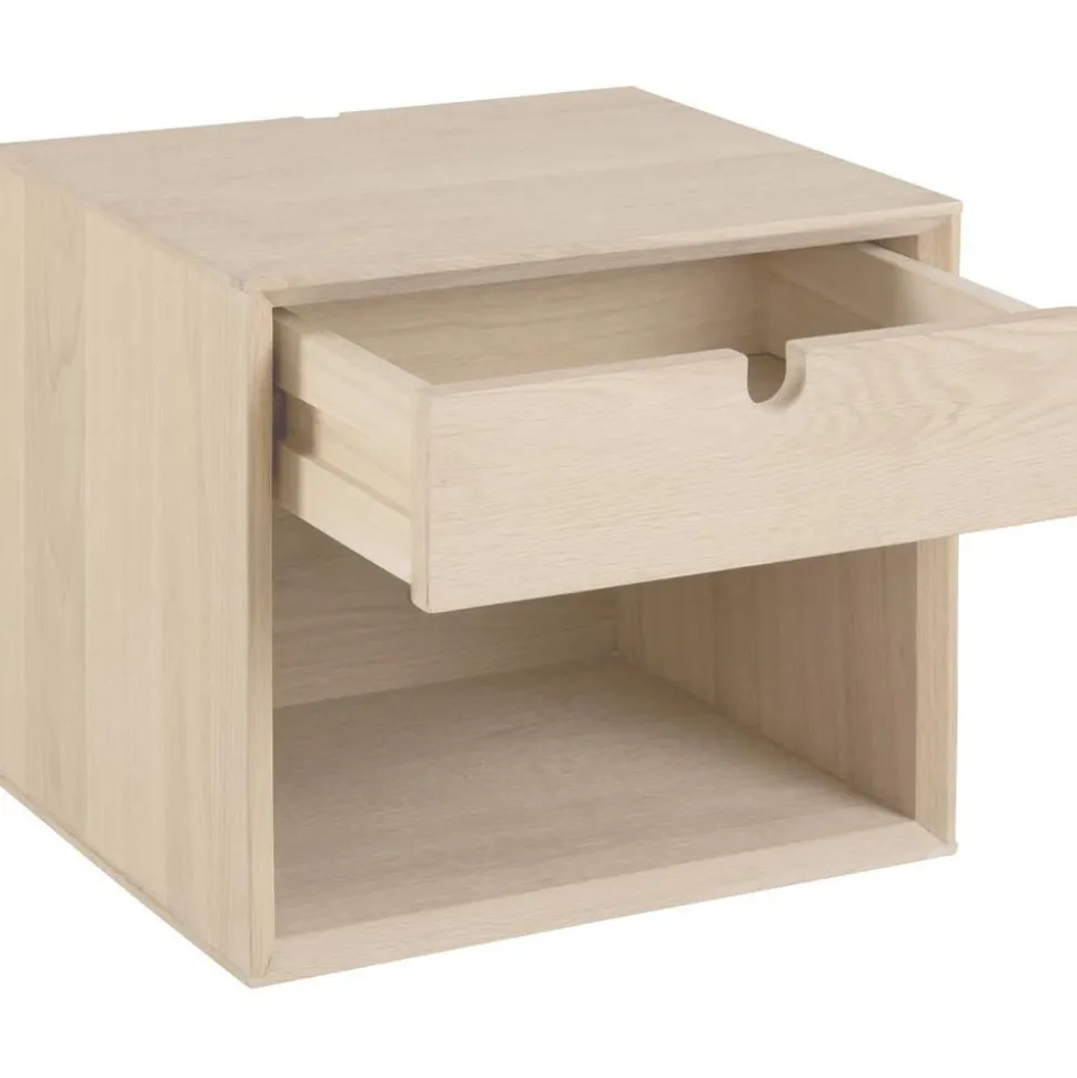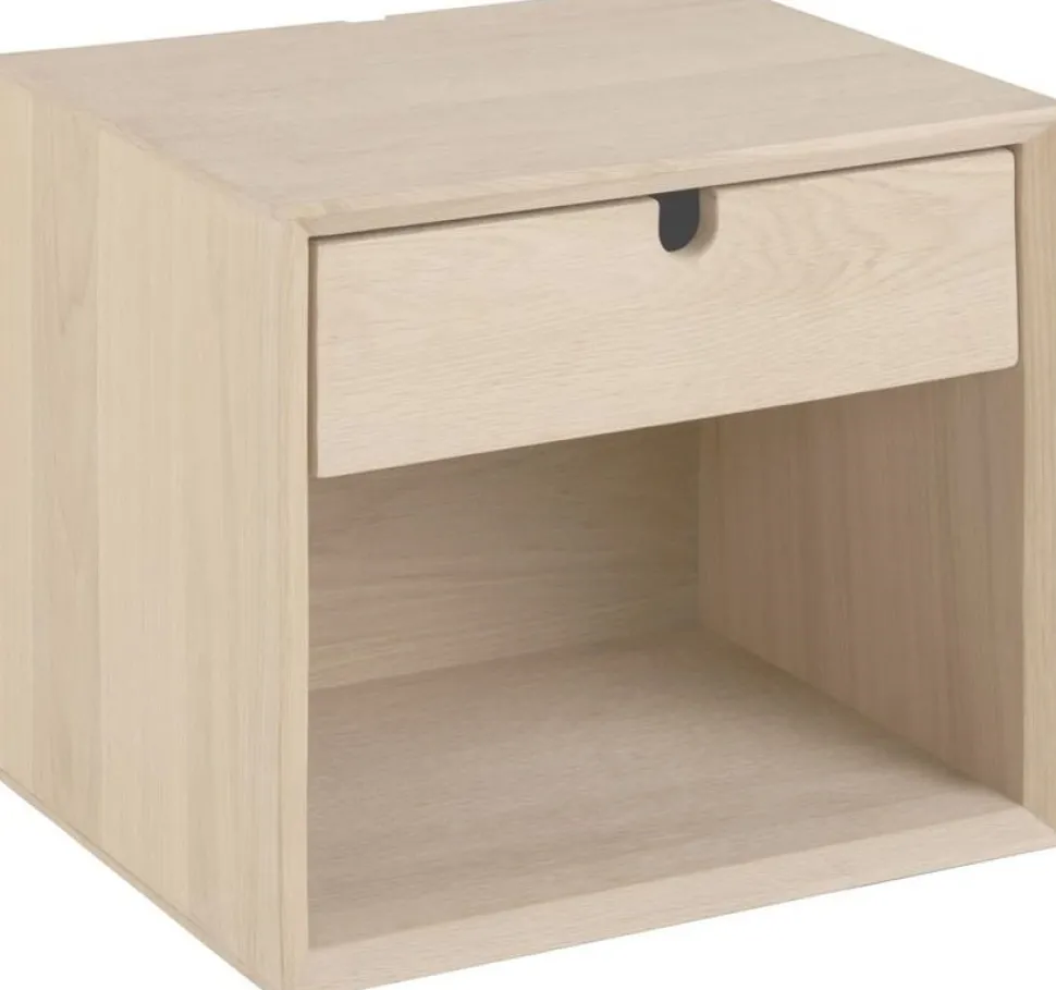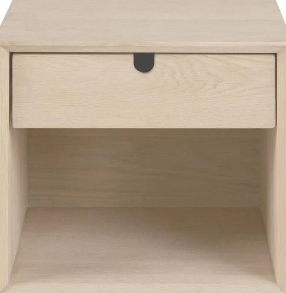Sängbord från vår Century serie. Stilren design med en låda för förvaring. Gjord av vitpigmenterad massiv ek. Finns möjlighet att montera på väggen.