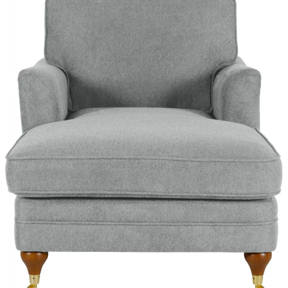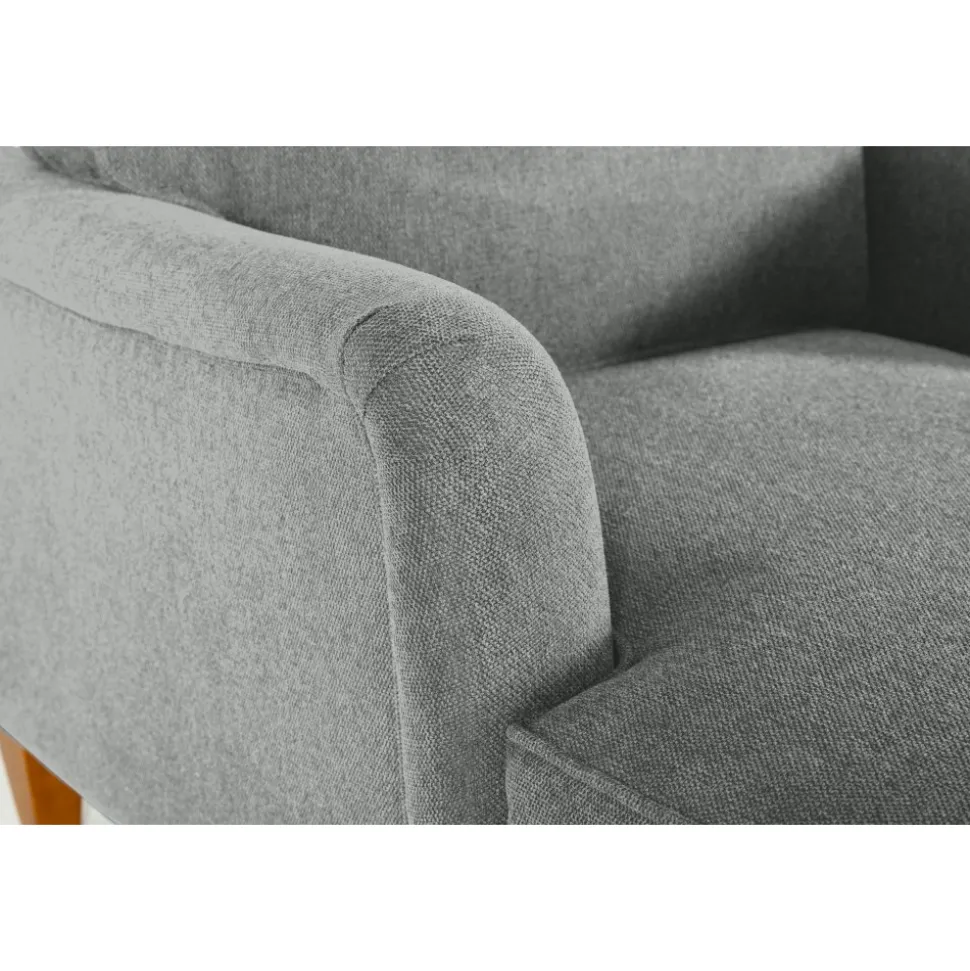 Fåtöljen levereras i en grå och stilren klädsel som passar i alla hem.