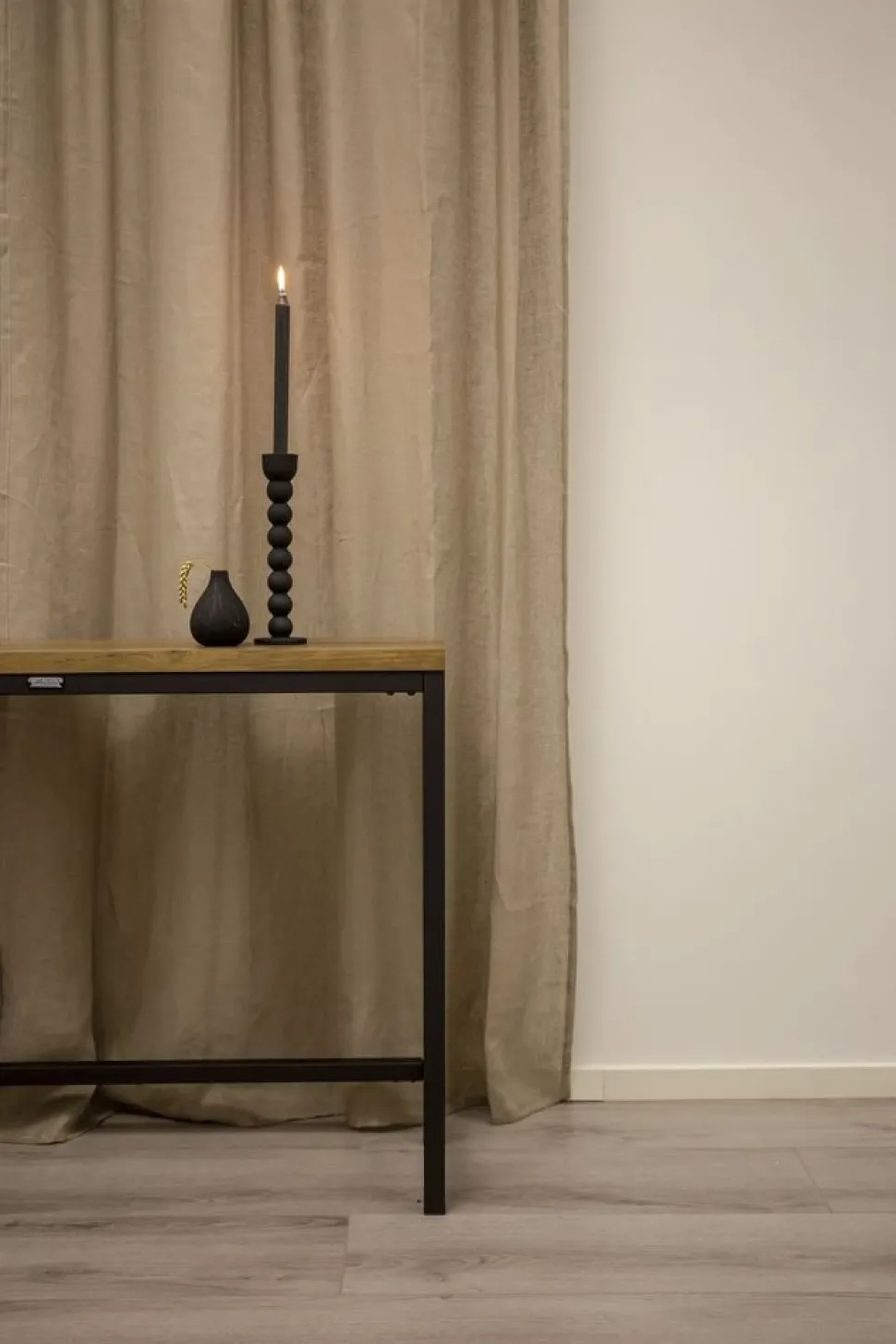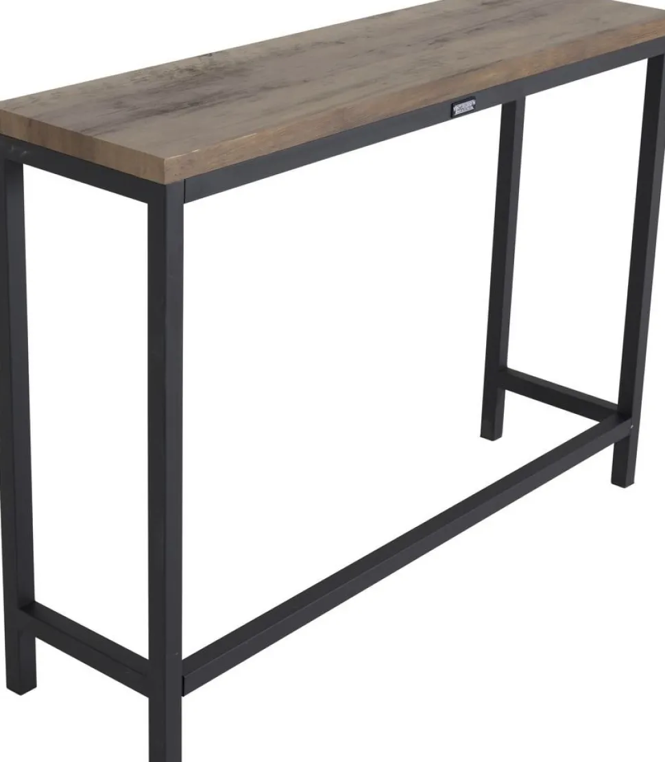 Avlastningsbord med toppskiva i MDF med mönster av vintage brun. Underrede i svart metall.