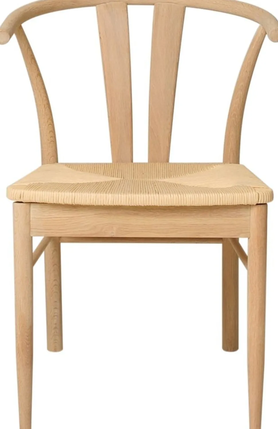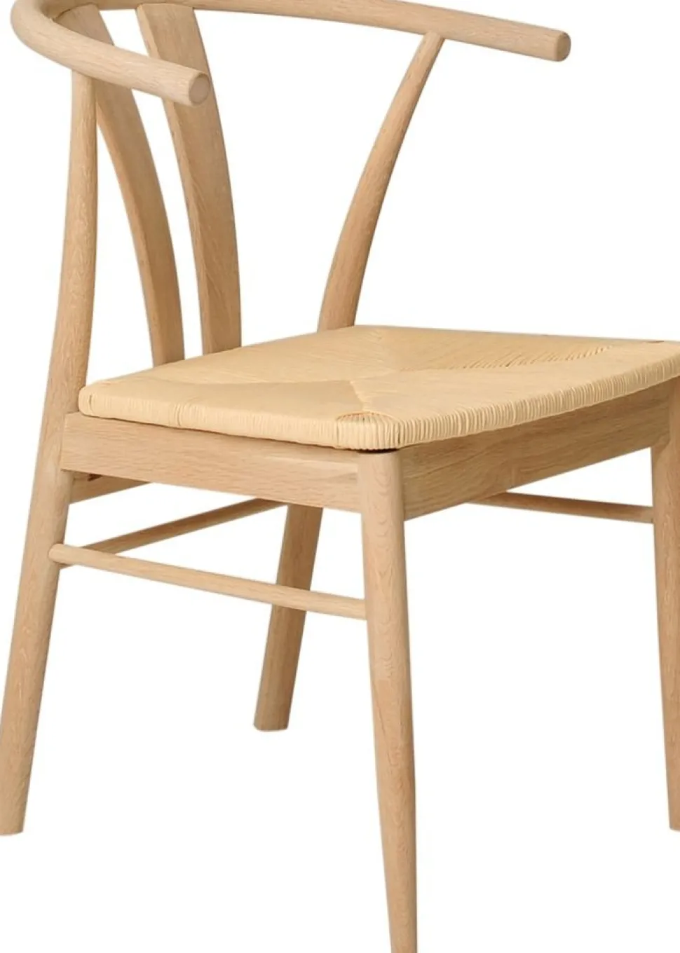 Chiba med en klassisk design. Sitsen är flätad i beige, trästomme i vitpigmenterad oljad ek.