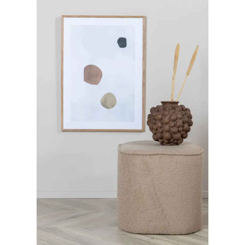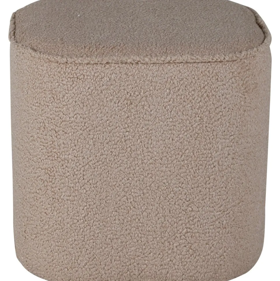 Sittpuff av trä, klädd med polyestertyg.