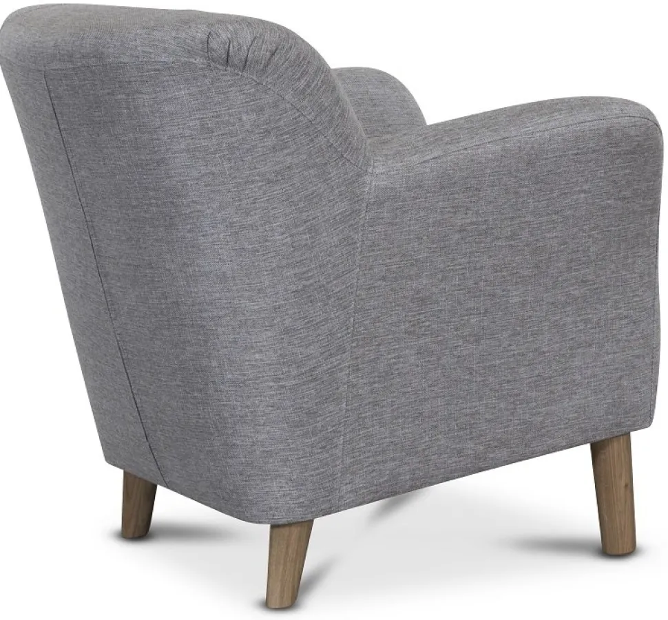 Le Grande är en stilfull retroinspirerad clubfåtölj som kombinerar klassiskt utseende med modern sittkomfort. Fåtöljen är klädd i ett slitstarkt, ljusgrått tyg (Rocco 571) och har dekorativa knappar i ryggen som förstärker dess eleganta karaktär. De massiva benen i ek ger både stabilitet och en naturlig värme till designen.