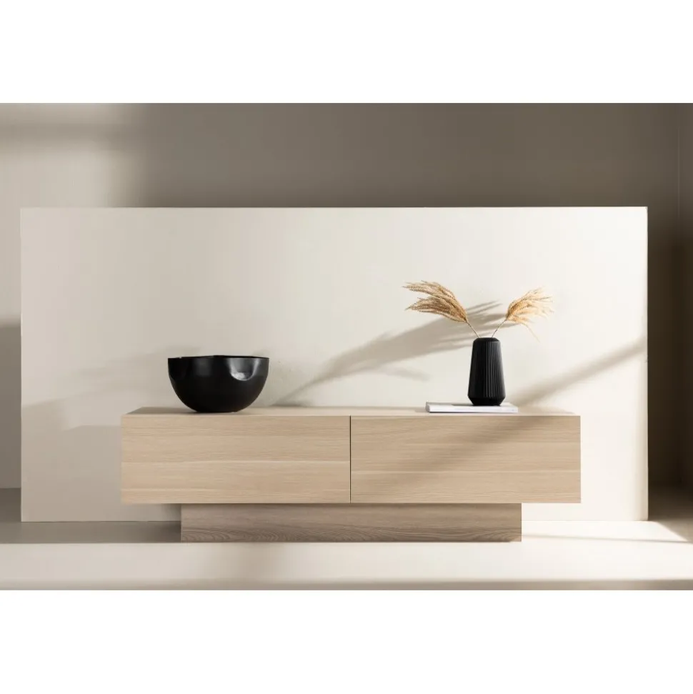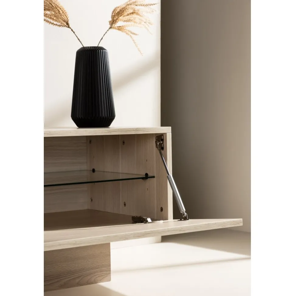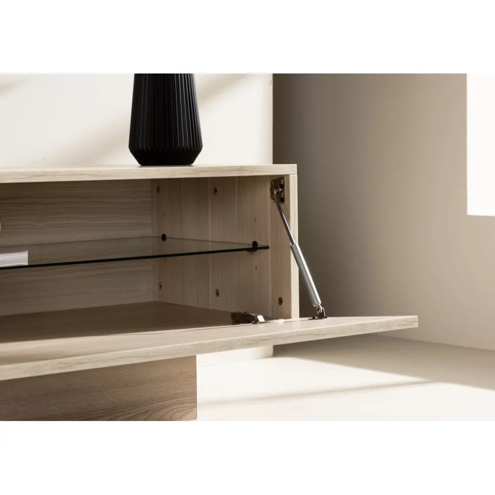 Ljust, fräscht och stilrent! Tv-bänken i vit-putsad finish med robust, nordisk design från serien Cuenca är nog det perfekta valet till ditt moderna hem och mysiga soffhörna! Tillverkad i en genomtänkt design i en varm vitputsad färg av melamin, ger denna din inredning en modern touch samtidigt som den erbjuder en smart förvaringslösning vid soffgruppen. Njut av fördelen med den smidiga skåpsluckan, en dold förvaringsmöjlighet där du kan organisera dina prylar och Tv-tillbehör med lätthet. Glasskivan som döljer sig däri bär upp allt du önskar förvara och skapar även utrymme för mer med sin smarta hylla. Dekorera sedan toppskivan för en mer hemtrevlig och modern look. Pryd med ljusstakar, böcker eller en liten växt för att ge liv och rörelse till blickfånget. Här får du chansen att skapa en atmosfär som passar just din stil och gör att du känner dig omringad av komfort och elegans. Den robusta, centerplacerade foten ger inte bara ett stabilt stöd åt din bänk, den lyfter även upp ditt rum och gör dammsugningen till en enkel uppgift. Stilren, modern och tidlös – Cuenca Tv-bänk sätter en ny standard för både förvaring och design! Levereras omonterad.