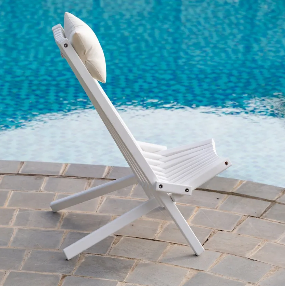 Denna klassiska däckstol i vitmålad acacia är perfekt för dig som vill ha en fräsch och stilren utemöbel. Den tidlösa designen passar lika bra på balkongen, uteplatsen eller i trädgården och blir snabbt en favorit för avkopplande stunder i solen.