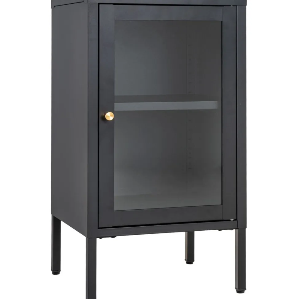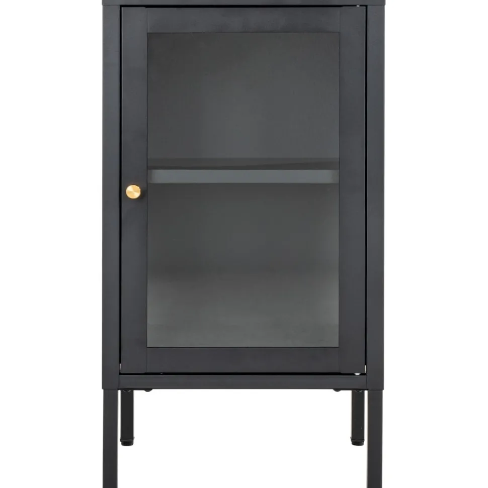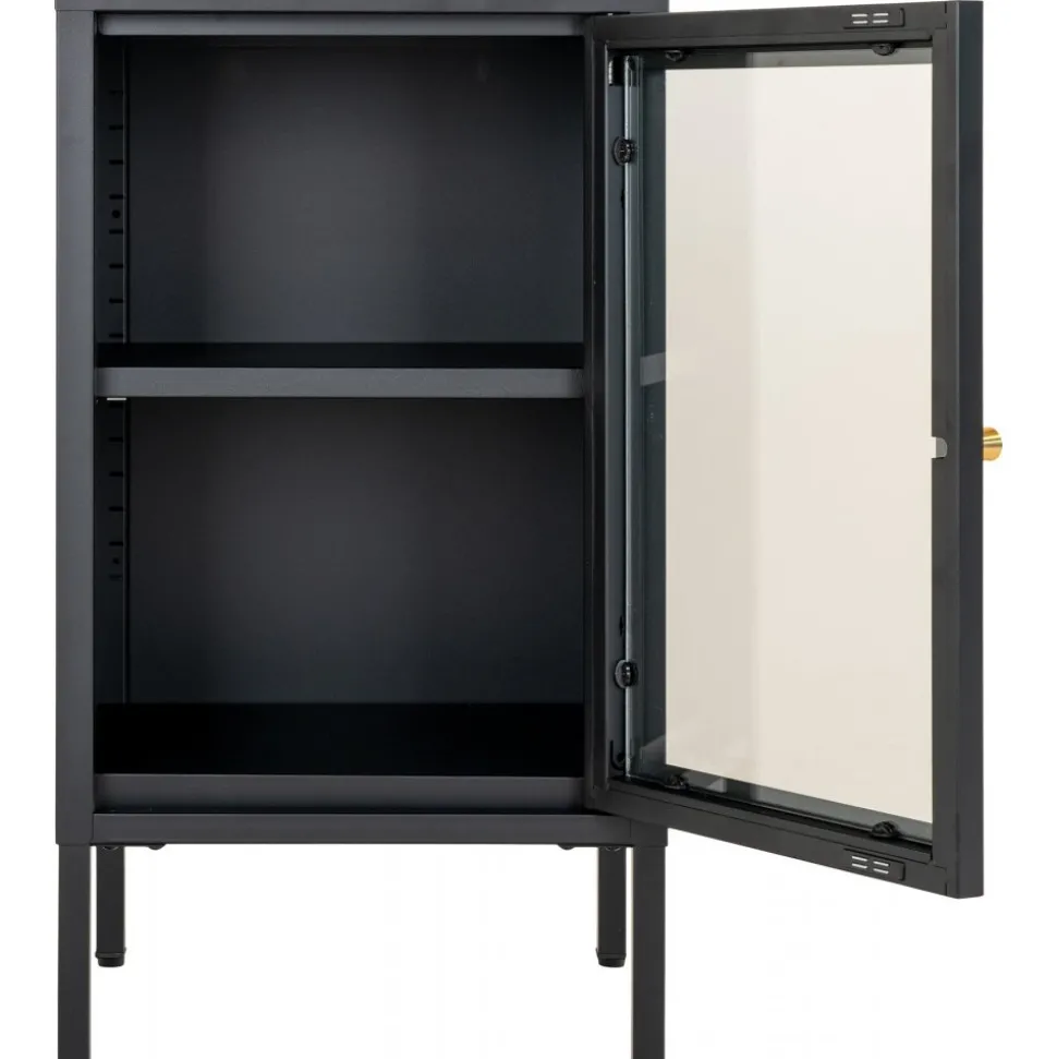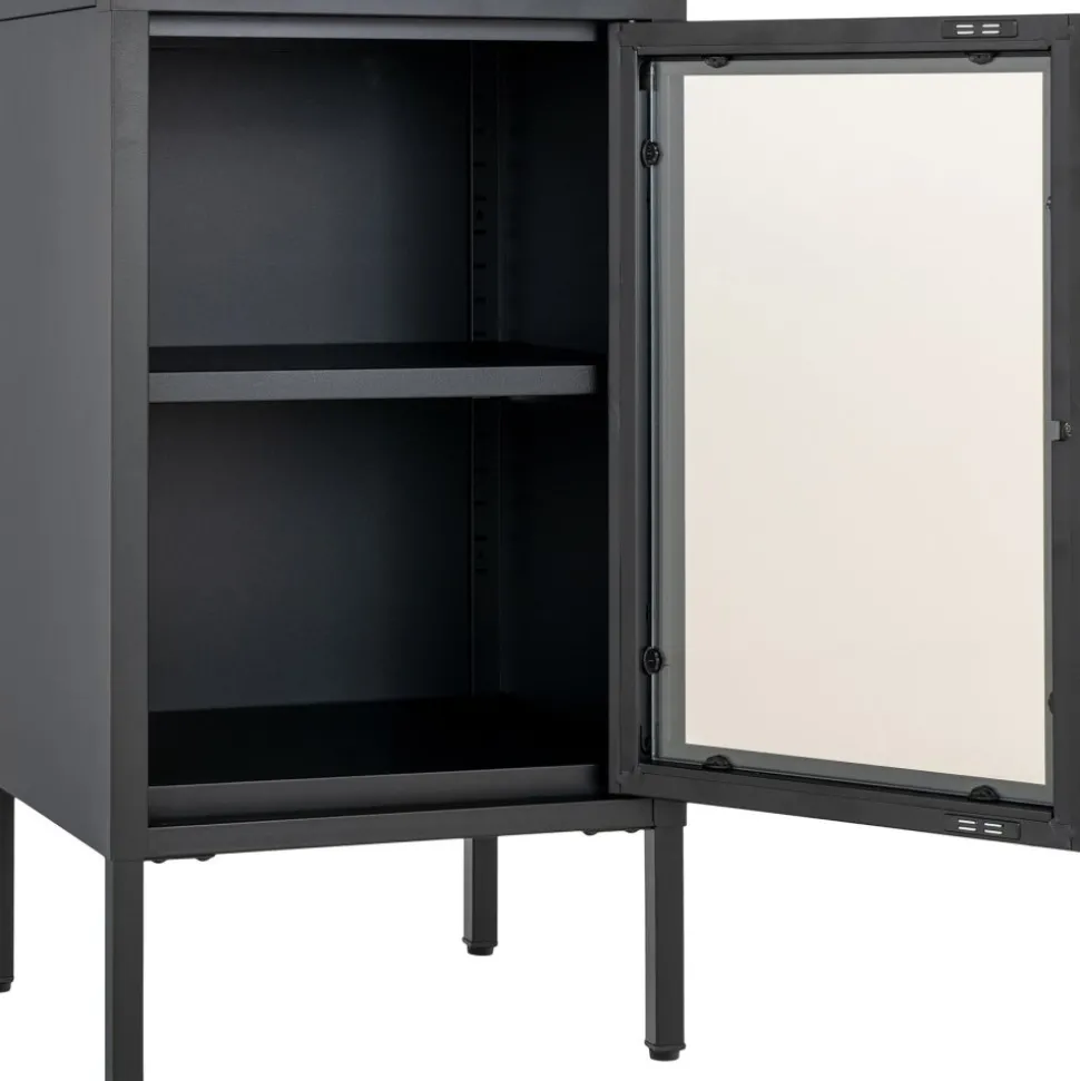 Skåp av stål med glasdörr.