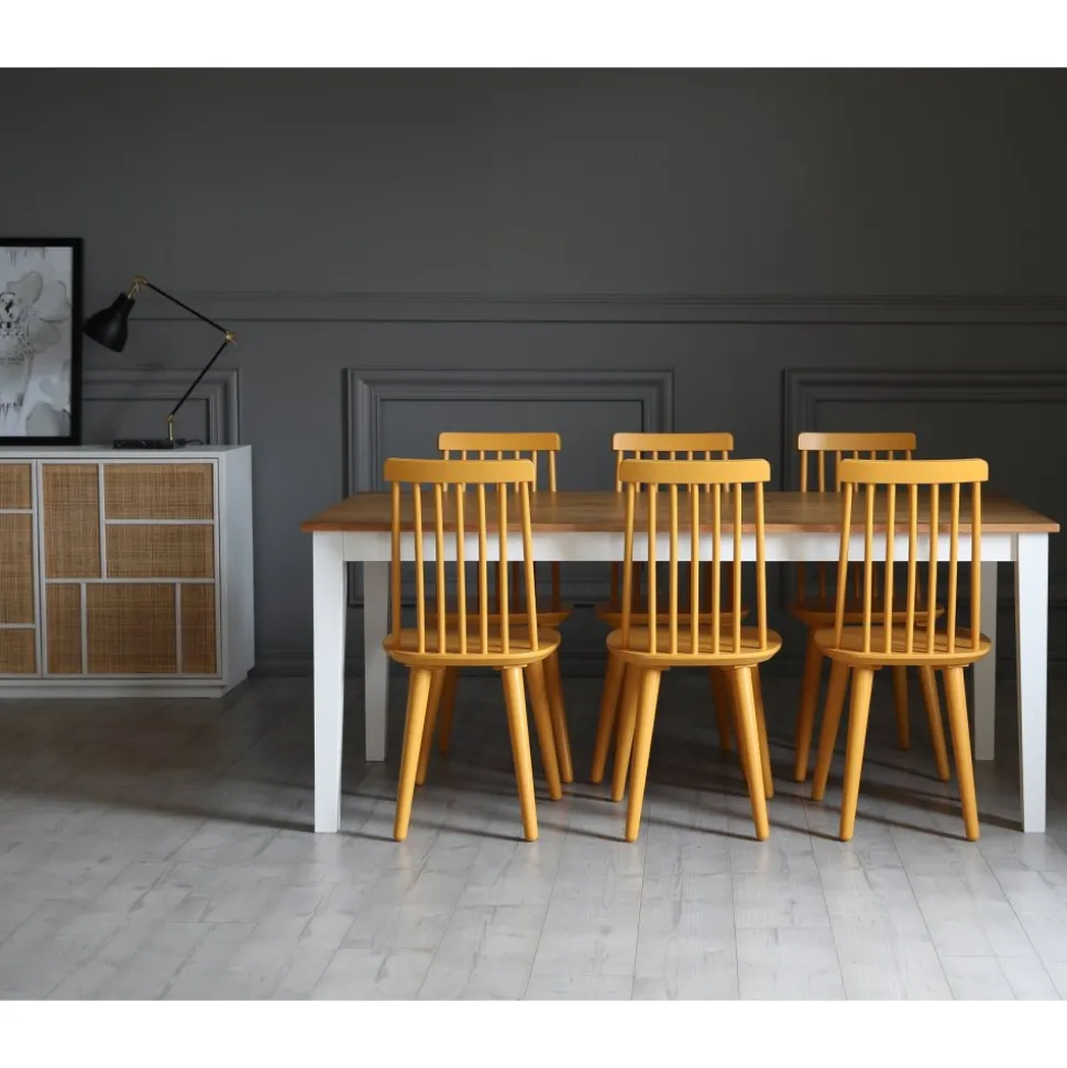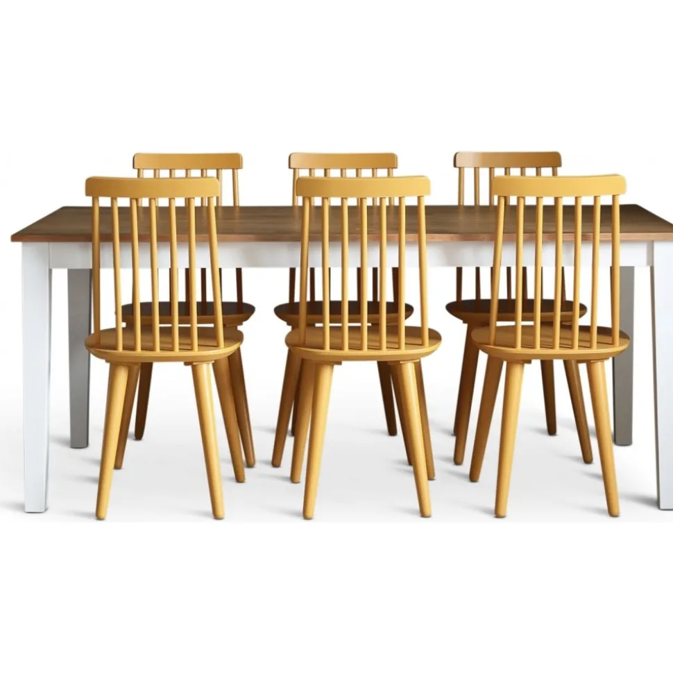 Dalsland matgrupp: Matbord i Ek / Vit med 6 st gula Pinnstolar: