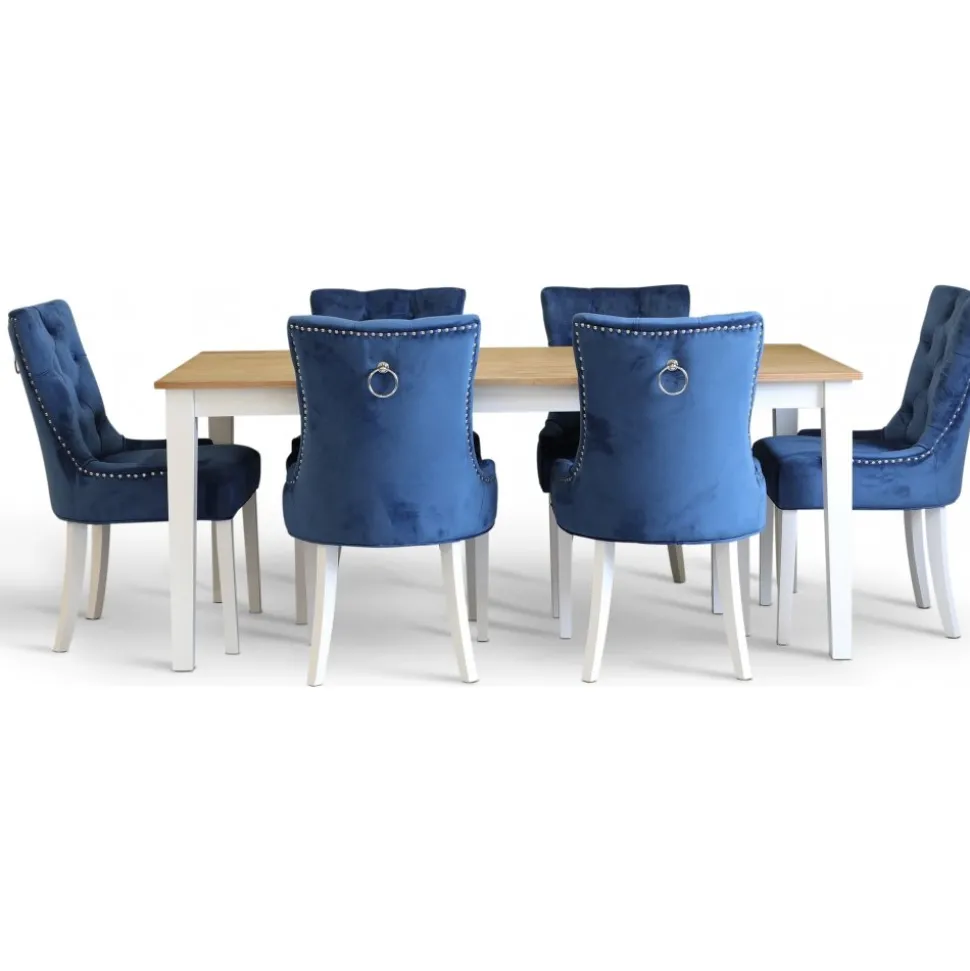 Dalsland matgrupp: Matbord i vit / ek med 6 st Tuva stolar i blå sammet: