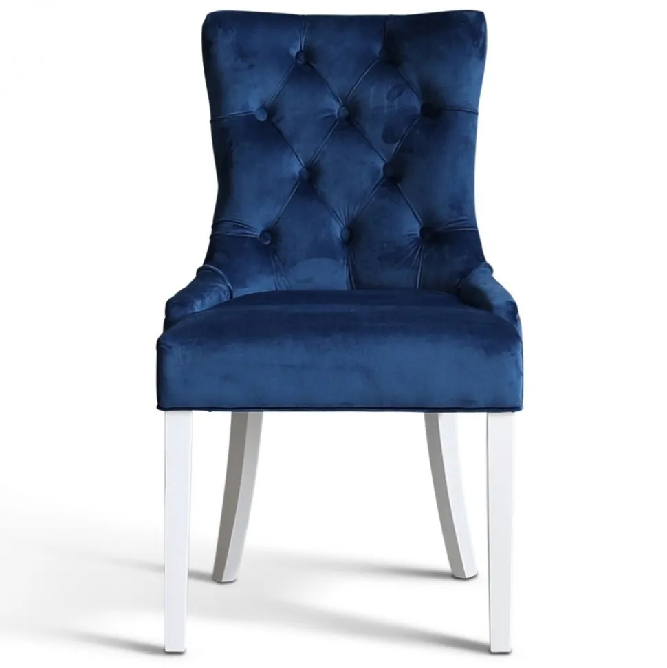 - Dalsland matgrupp: Matbord i vit / ek med 6 st Tuva stolar i blå sammet