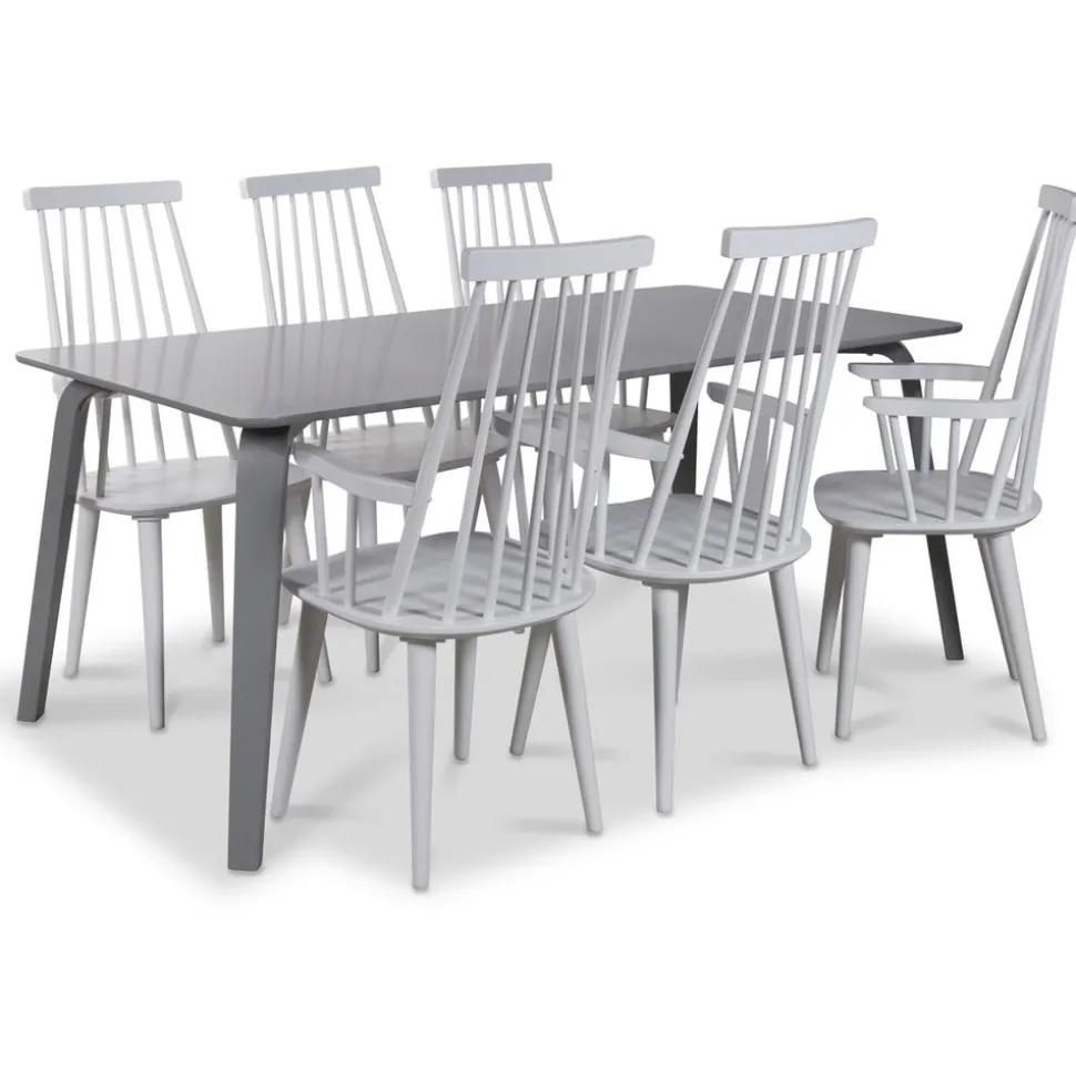 - Dalsland vit pinnstol med armstöd och hög rygg