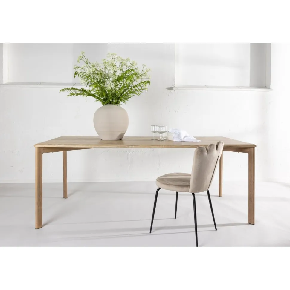 Det kan inte bli fel med en klassisk design och naturskön kulör! Det rektangulära matbordet Damon har en enkel men samtidigt charmig design i raka nordiska former. Toppskivan i MDF är vitputsad och ger ett rustik samtidigt som elegant intryck. Möblera hemmets hjärta inbjudande och trivsamt!